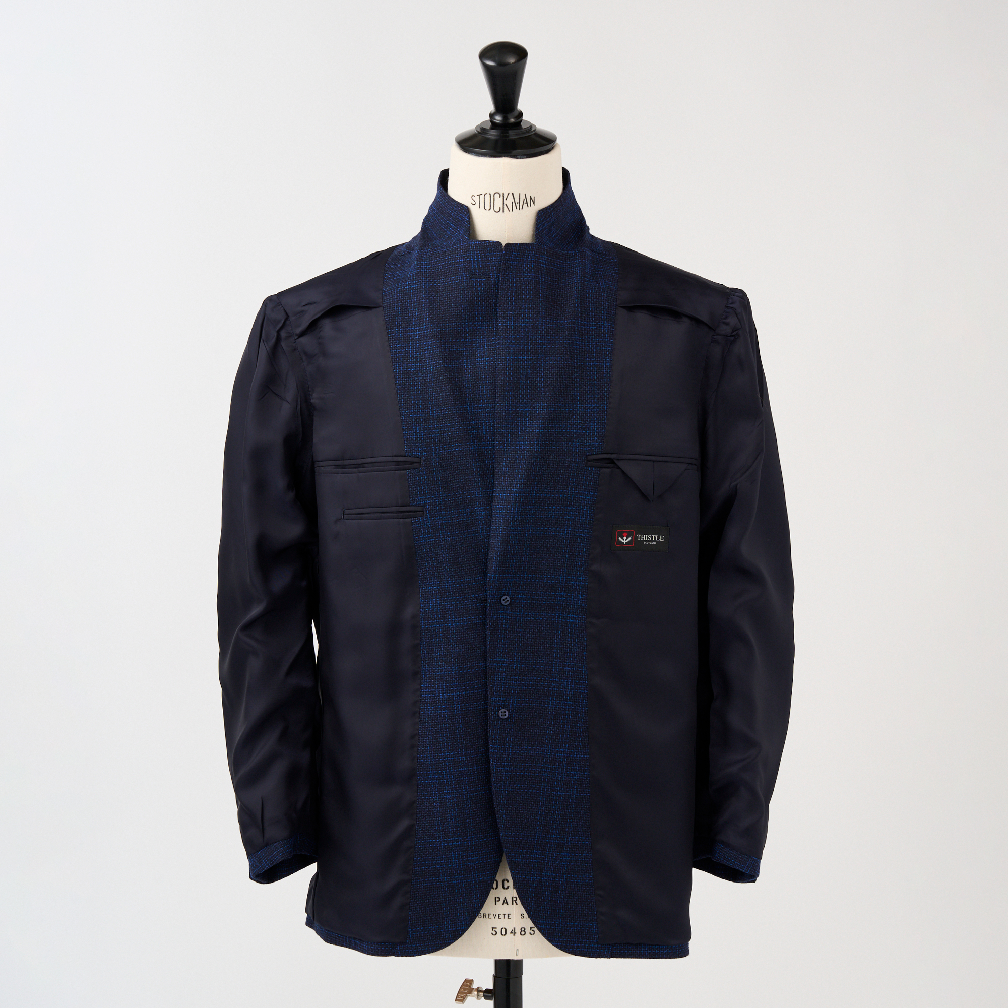 従来のツイードジャケットはカチッとした印象が強いですが、ウールメッシュツイードにはニットの様な柔らかな風合いがあり、リラックスした雰囲気も演出できます。ビジネスにもカジュアルにも幅広く対応可能なジャケットです。