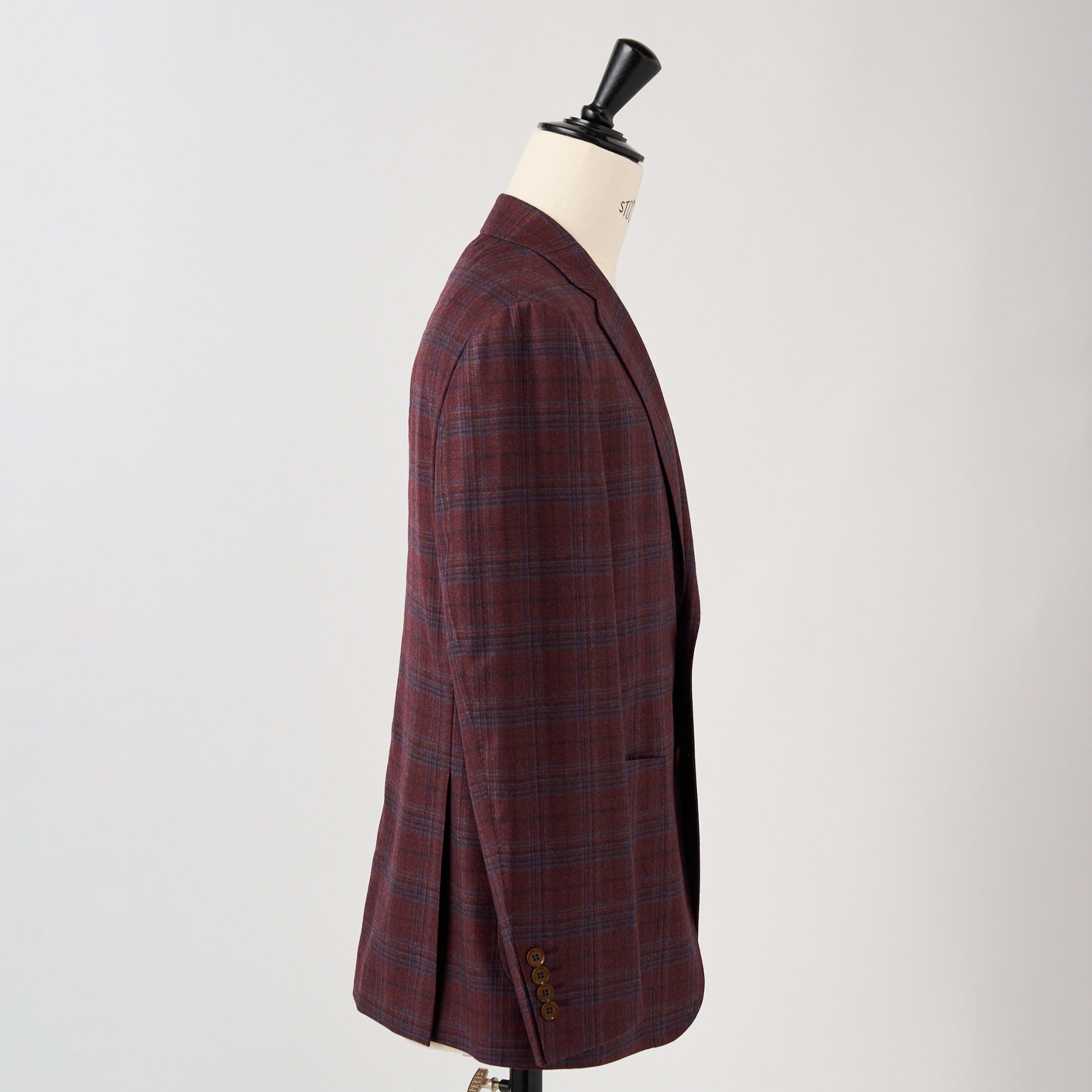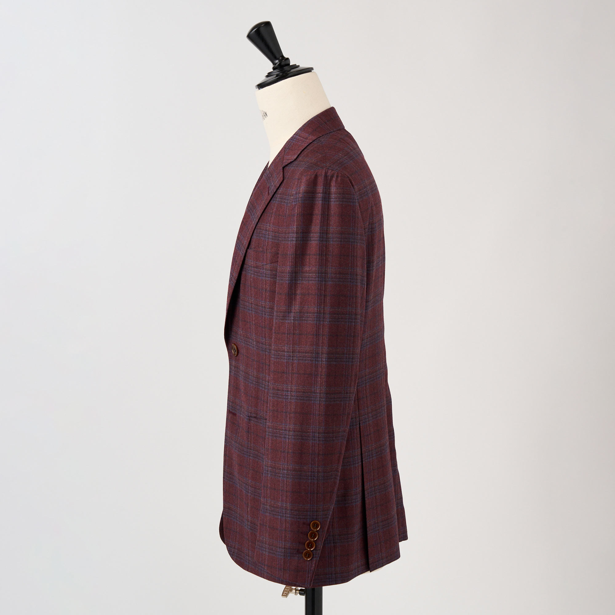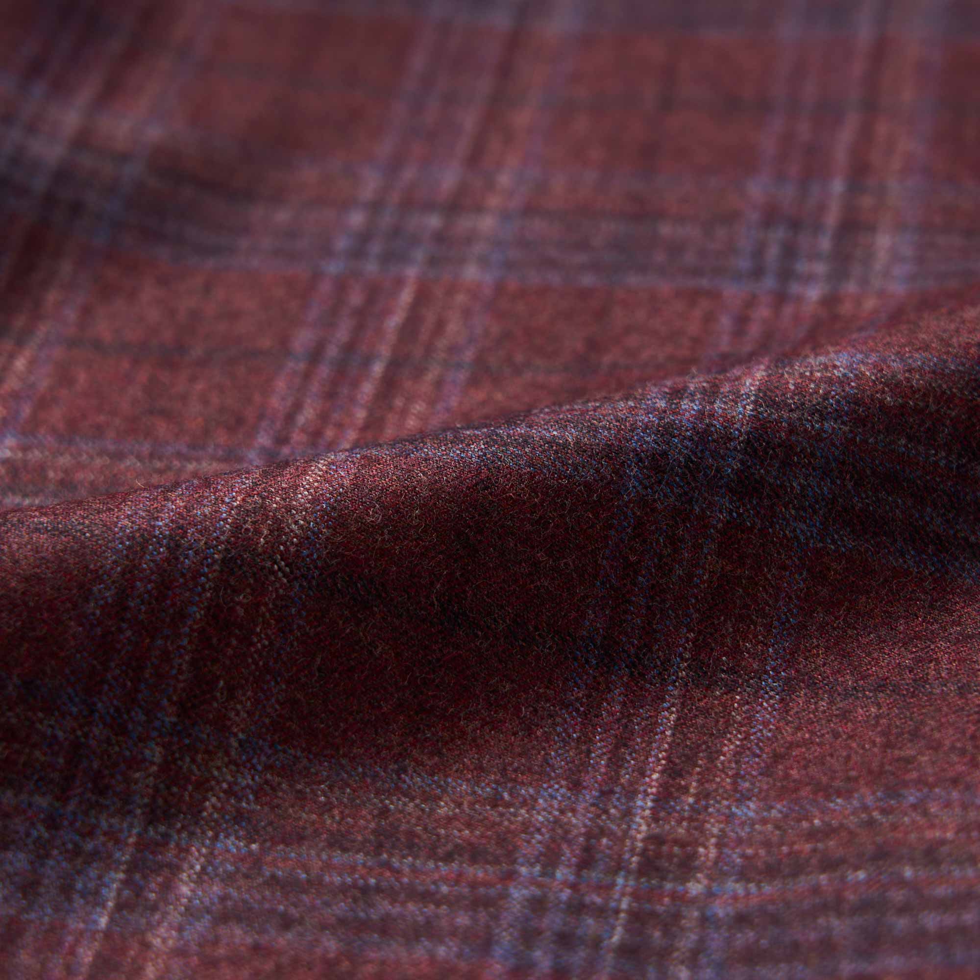 イタリア、REDA社のボルドーカラーのベースにブルーのウインドペンが入ったウールで仕立てたハーフ毛芯入りのジャケット。素材の艶感、色の奥行きが非常に深く、インパクトのあるカラーですが、大人の色気を感じる上質な1着です。