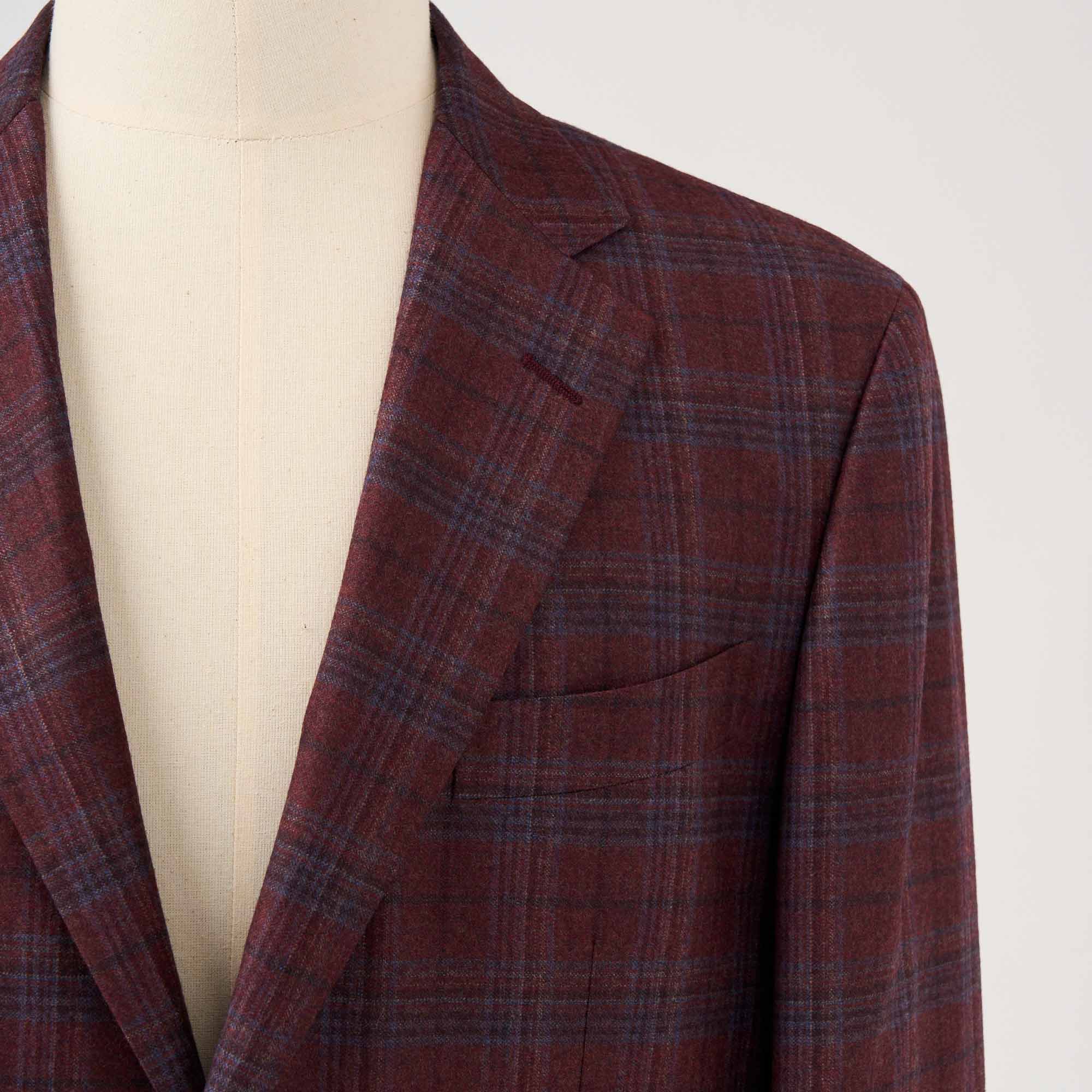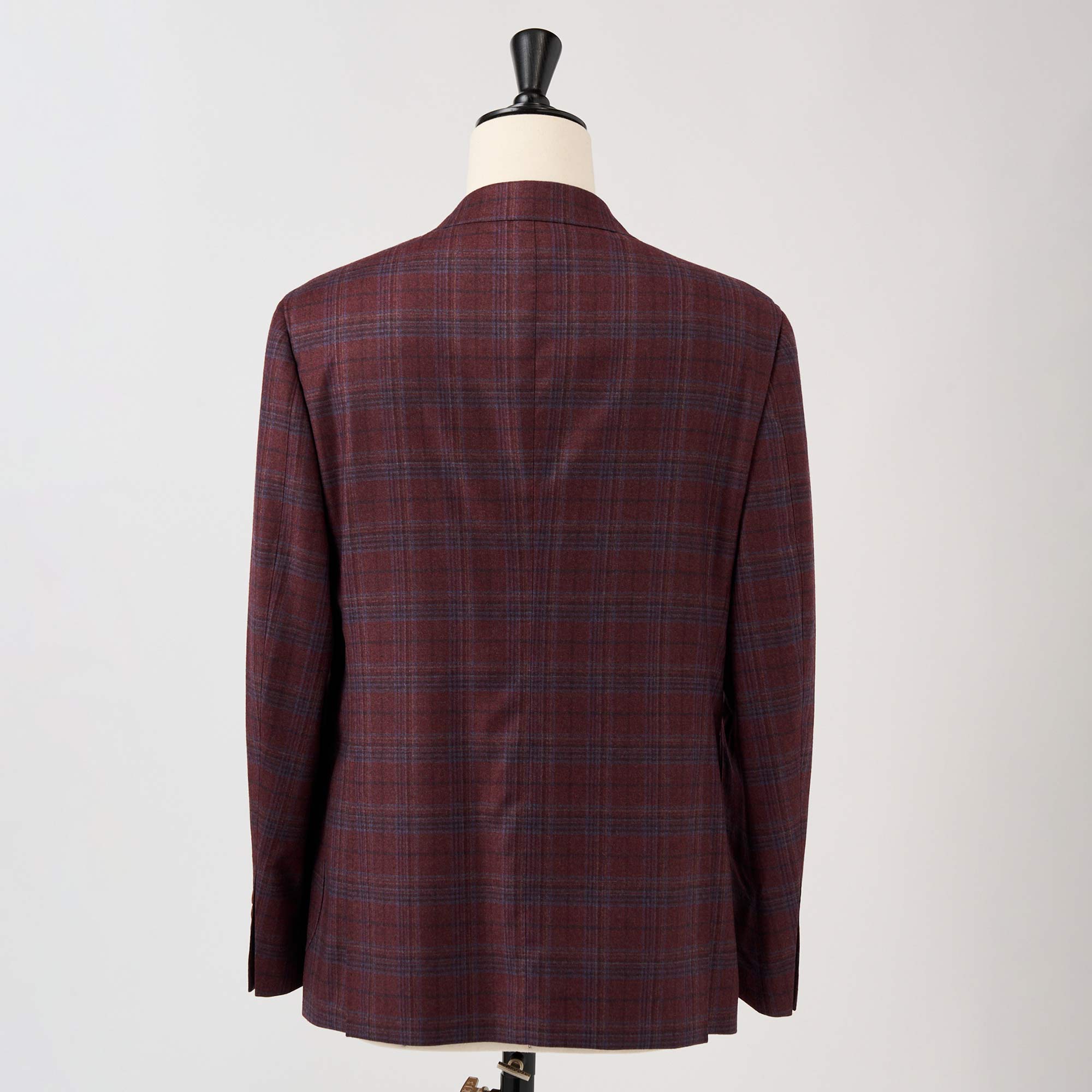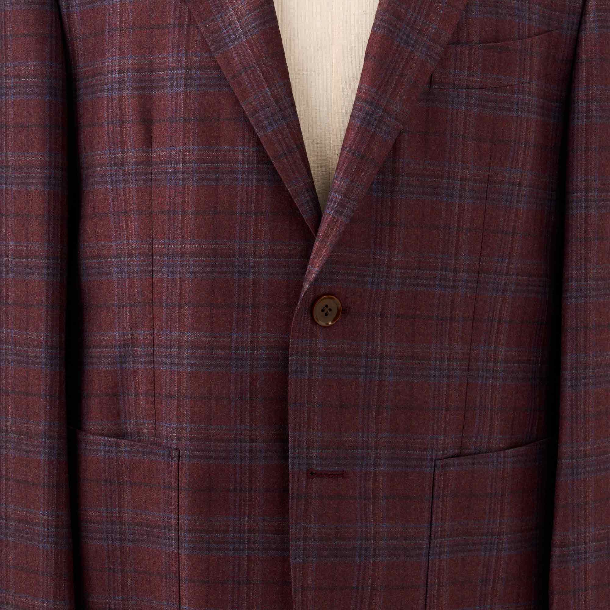 イタリア、REDA社のボルドーカラーのベースにブルーのウインドペンが入ったウールで仕立てたハーフ毛芯入りのジャケット。素材の艶感、色の奥行きが非常に深く、インパクトのあるカラーですが、大人の色気を感じる上質な1着です。