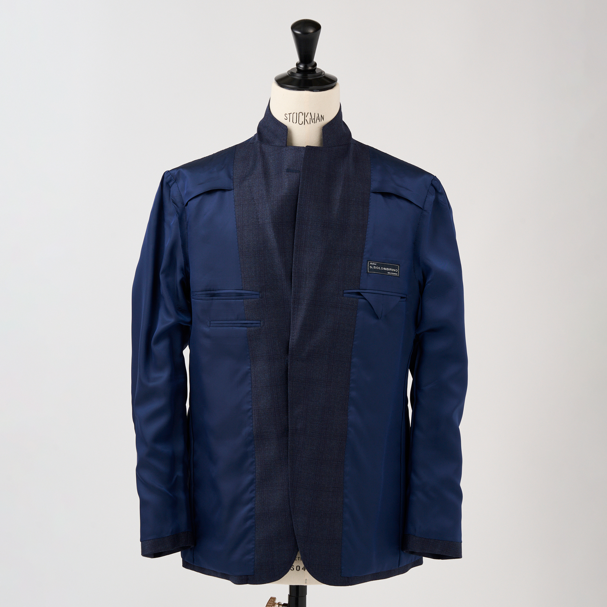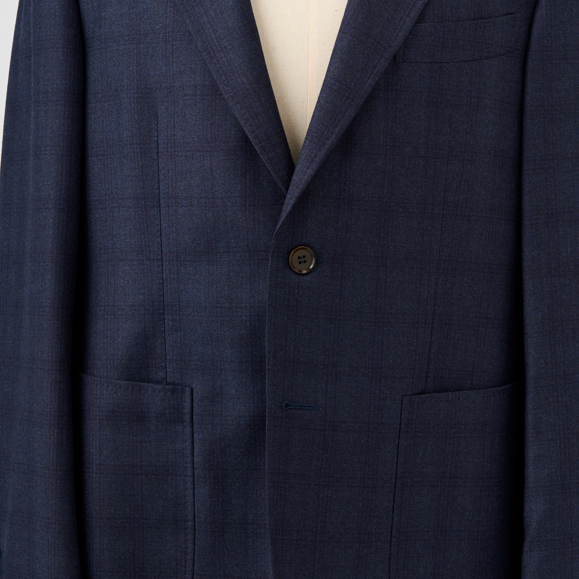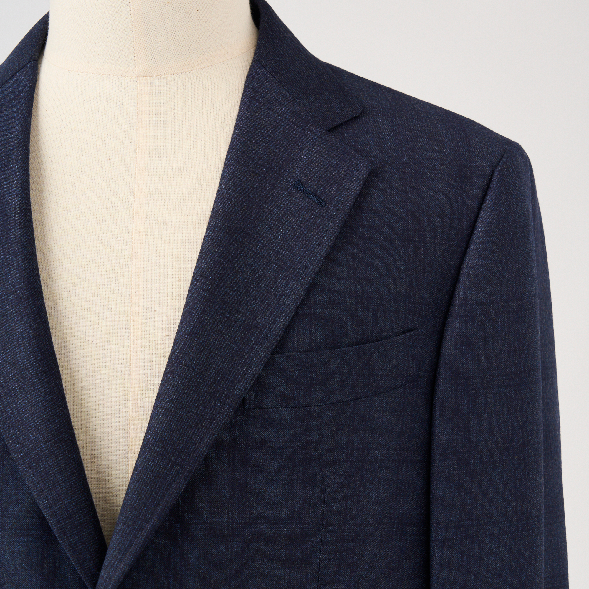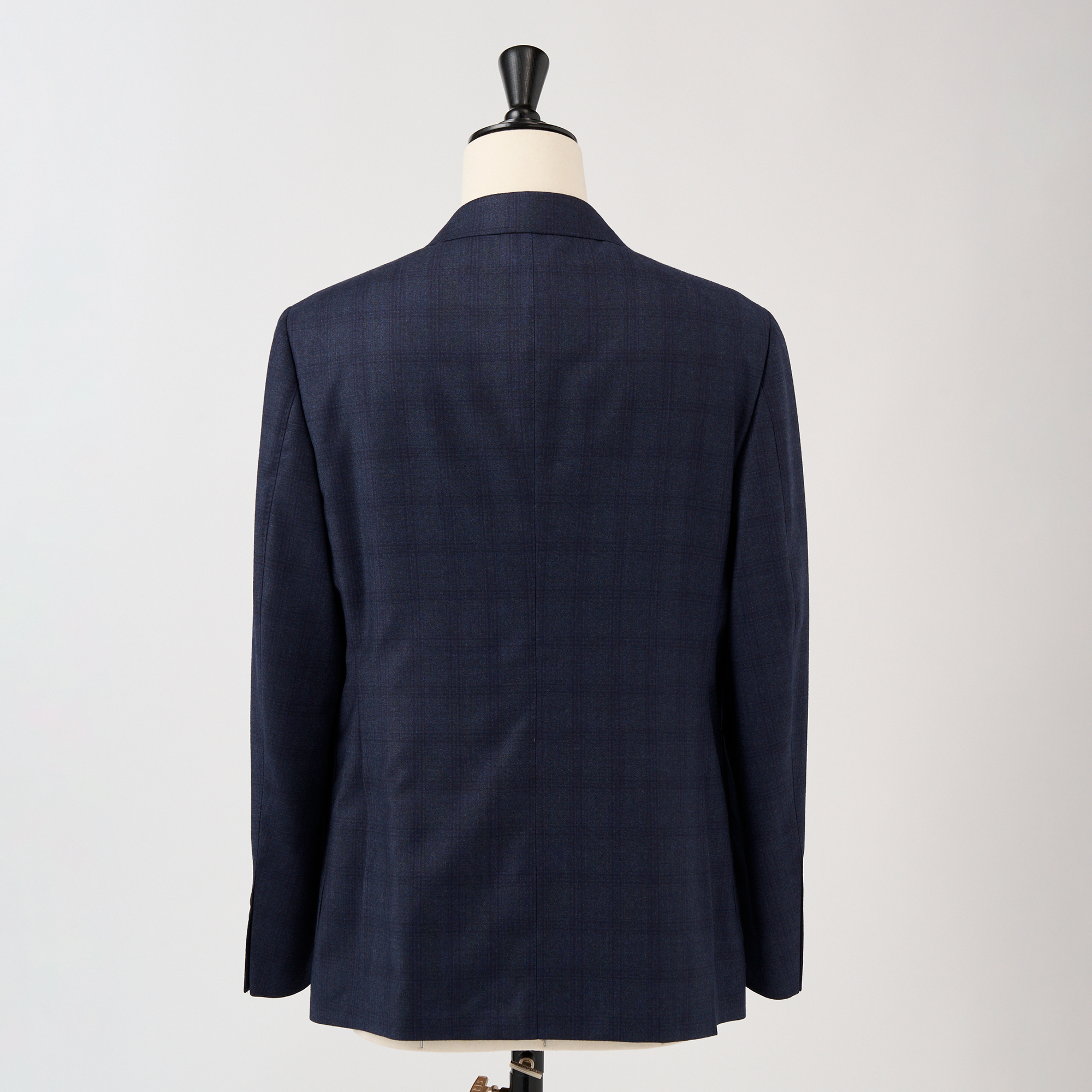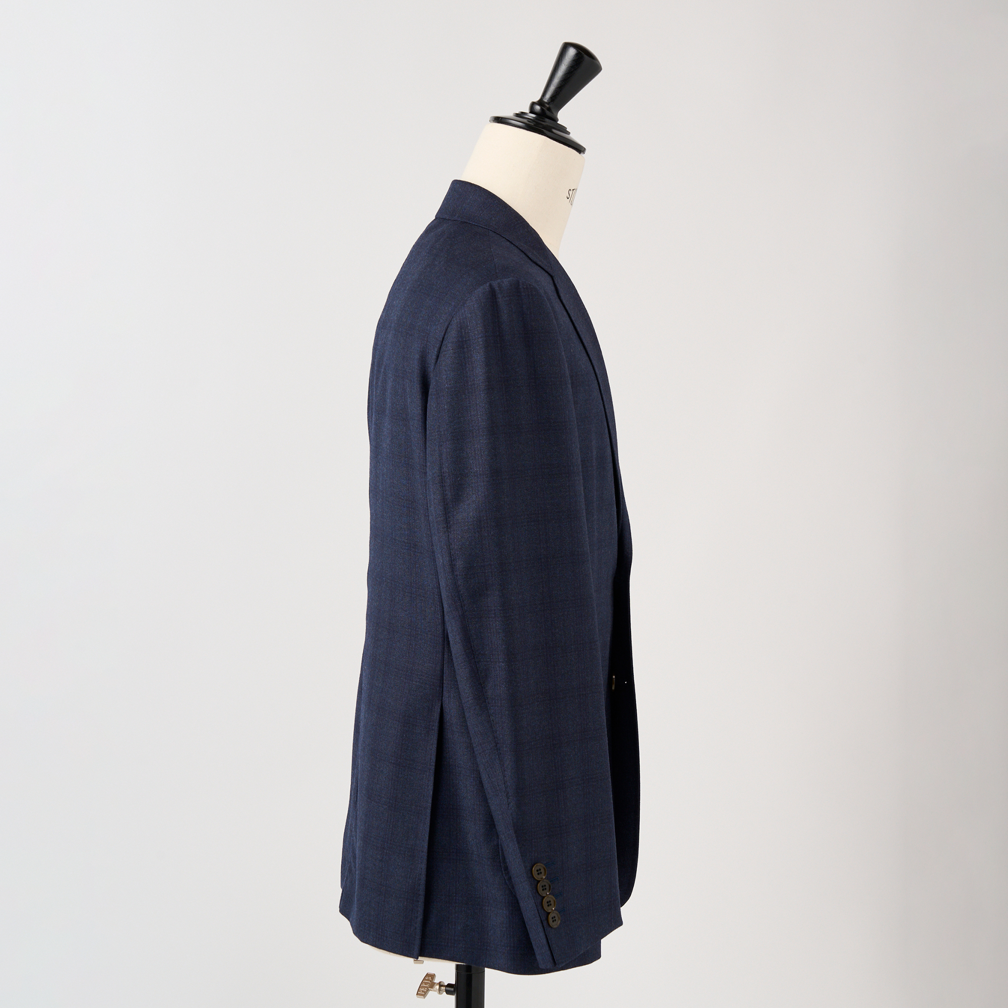 イタリア、REDA社のネイビーカラーのベースにシャドウ気味にウインドペンが入ったウールで仕立てたハーフ毛芯入りのジャケット。いわゆる紺ブレはまさに大人の男性の定番ジャケットと言えるでしょう。