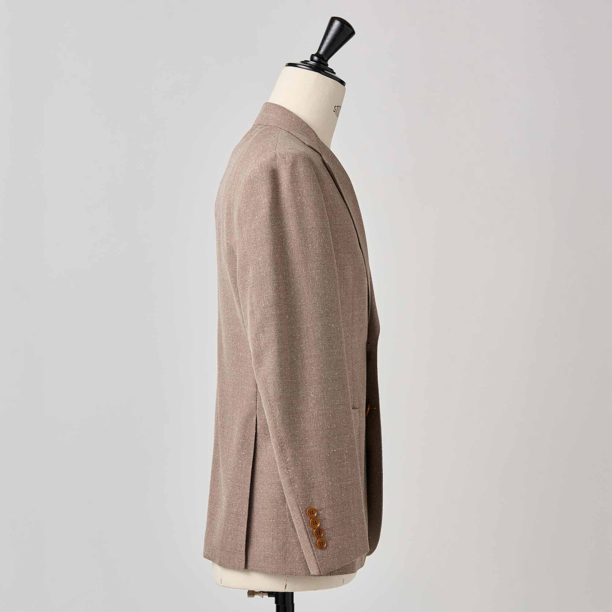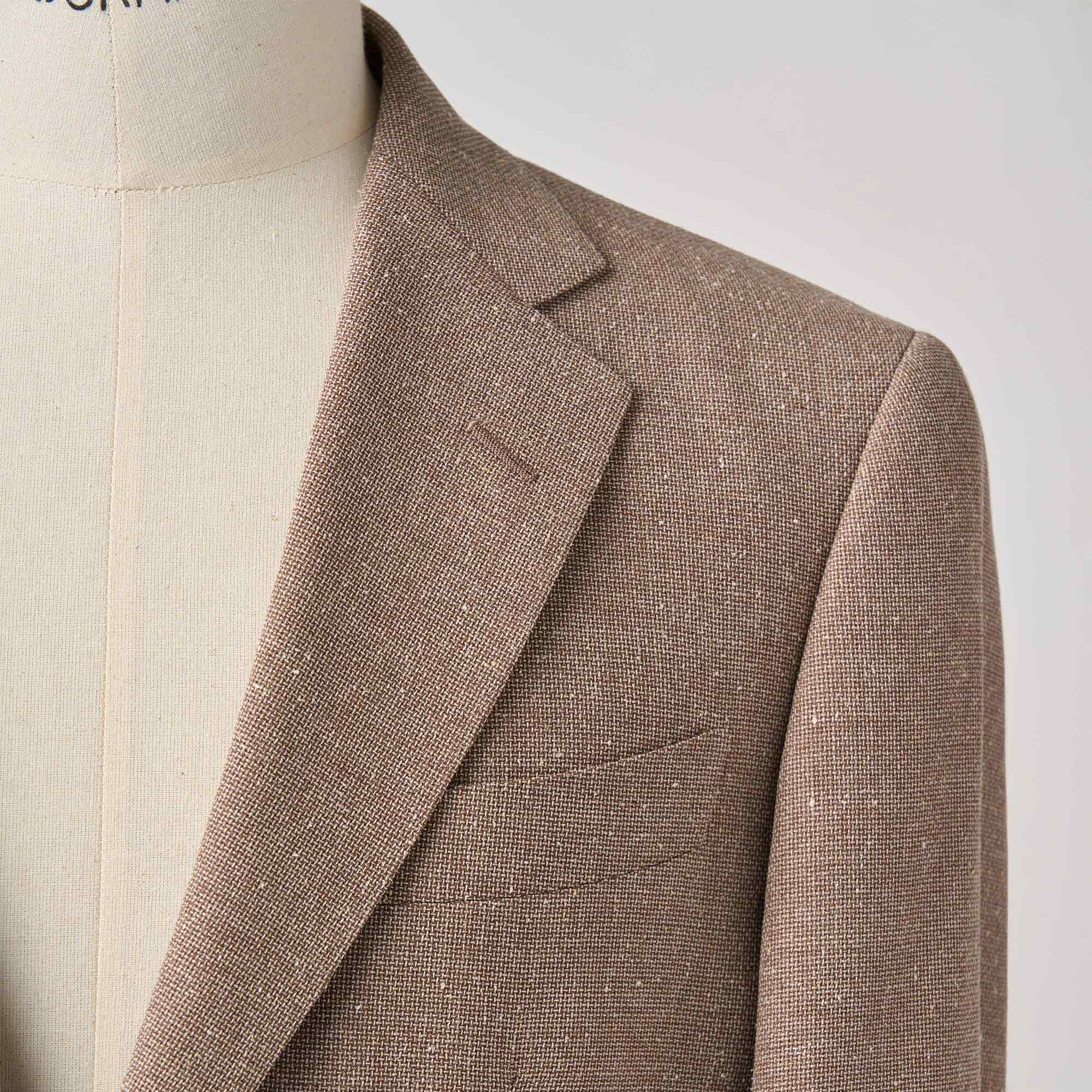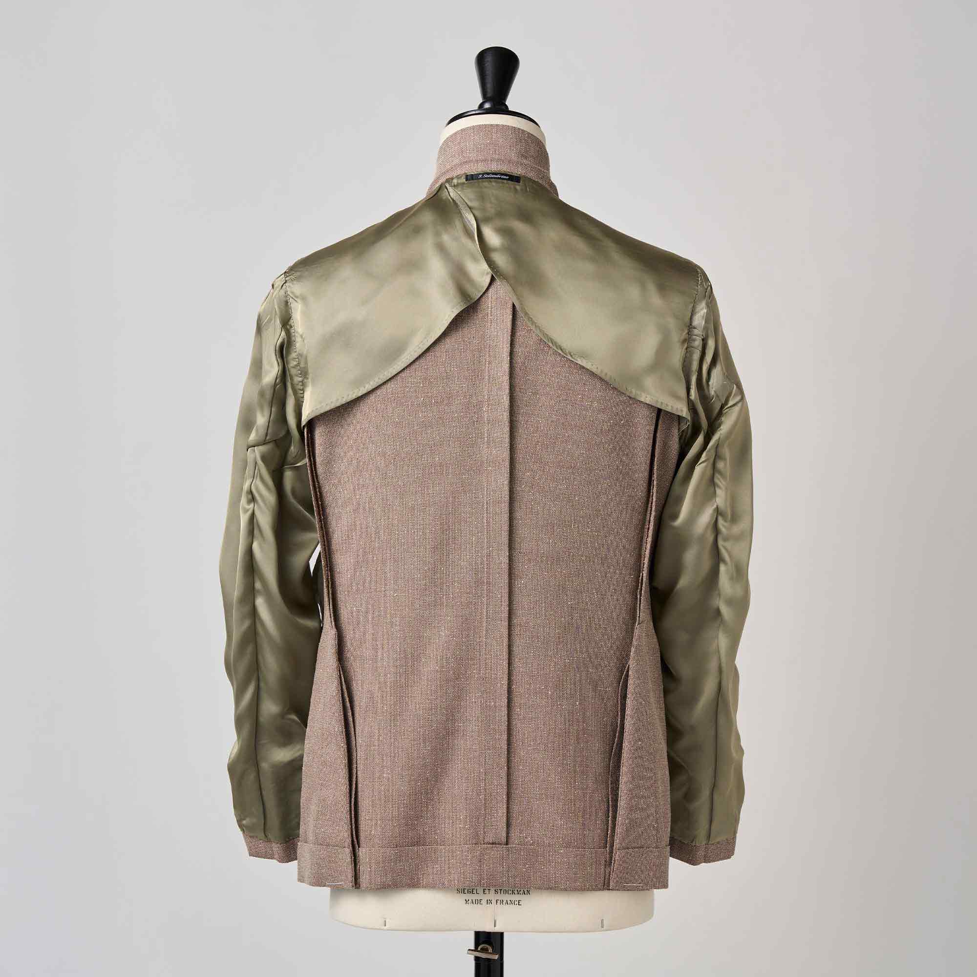 ベージュカラーのメッシュウールを使用し、ハーフ毛芯の半裏ジャケットを仕立てました。