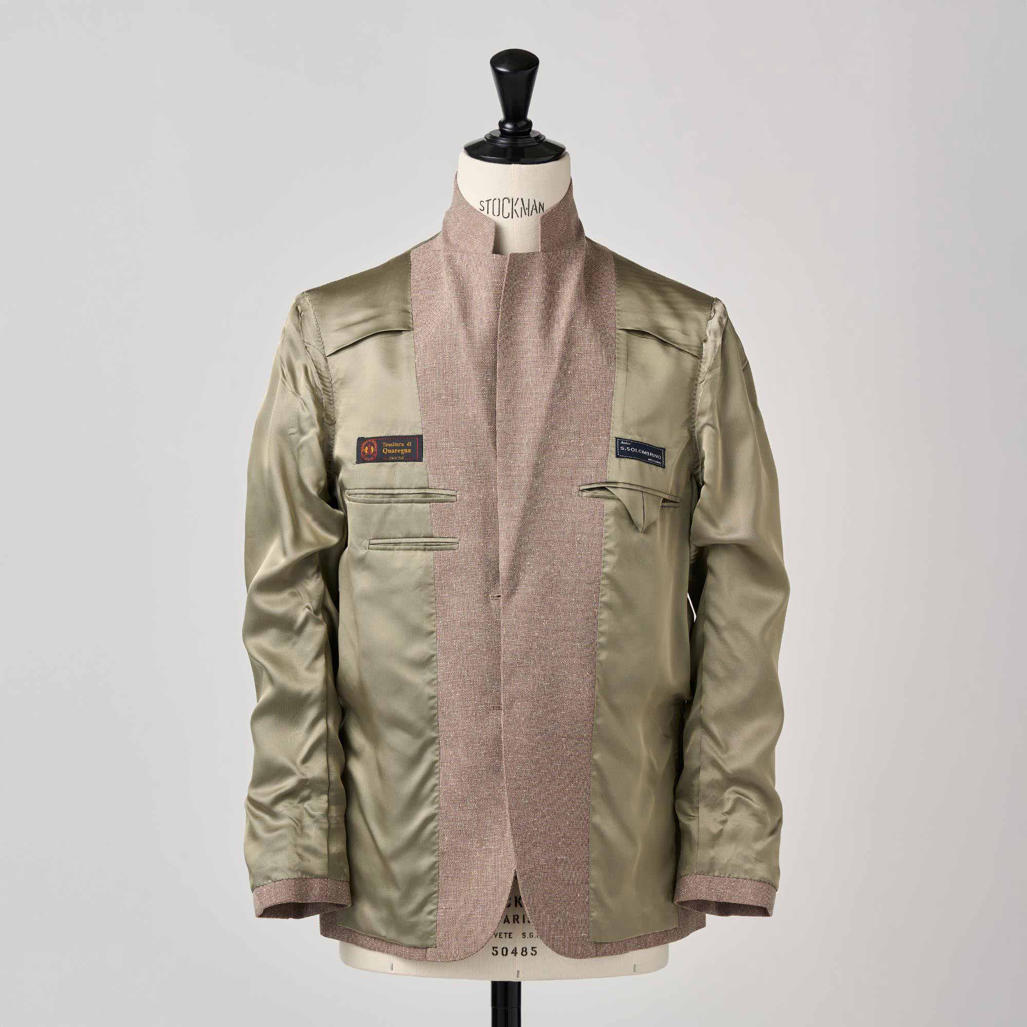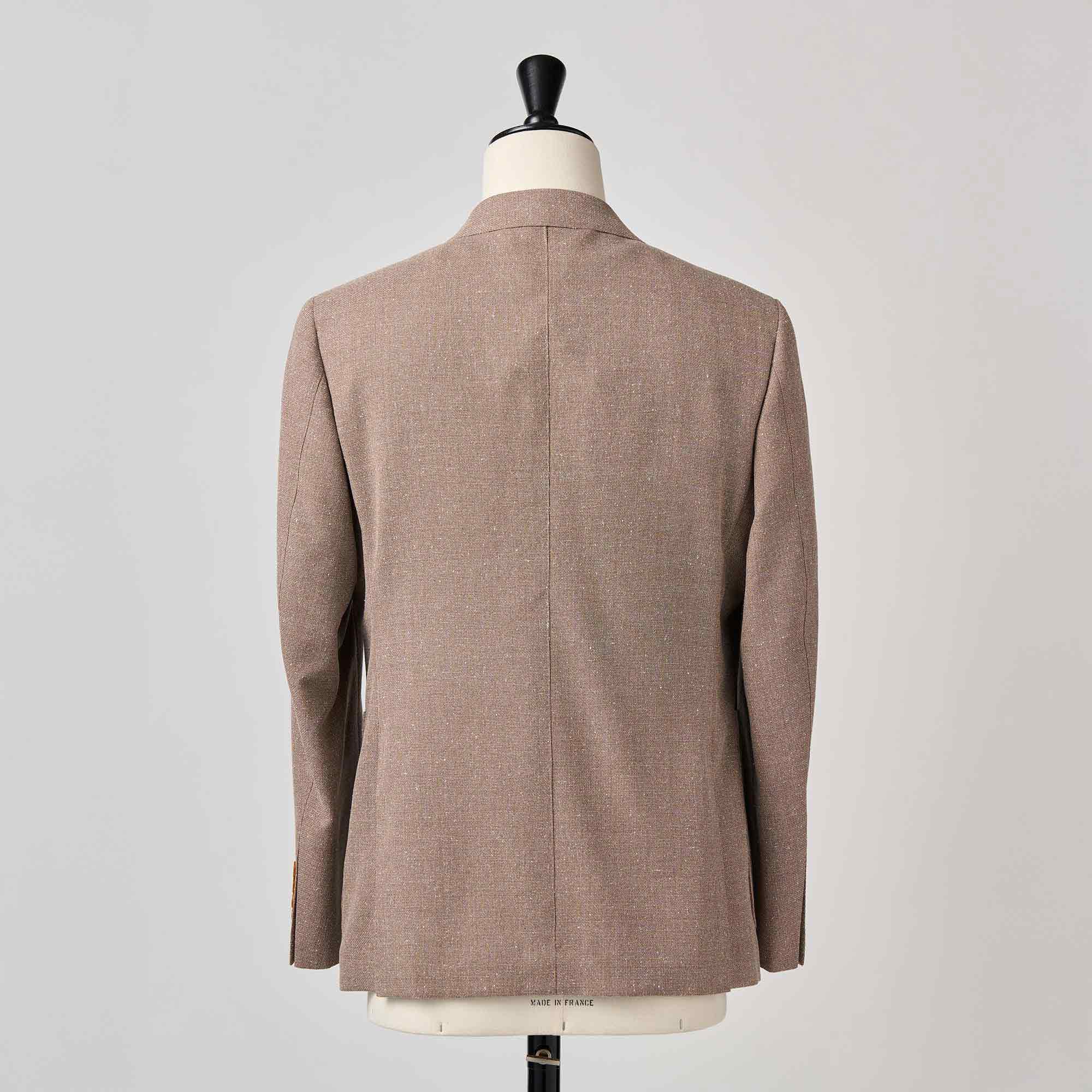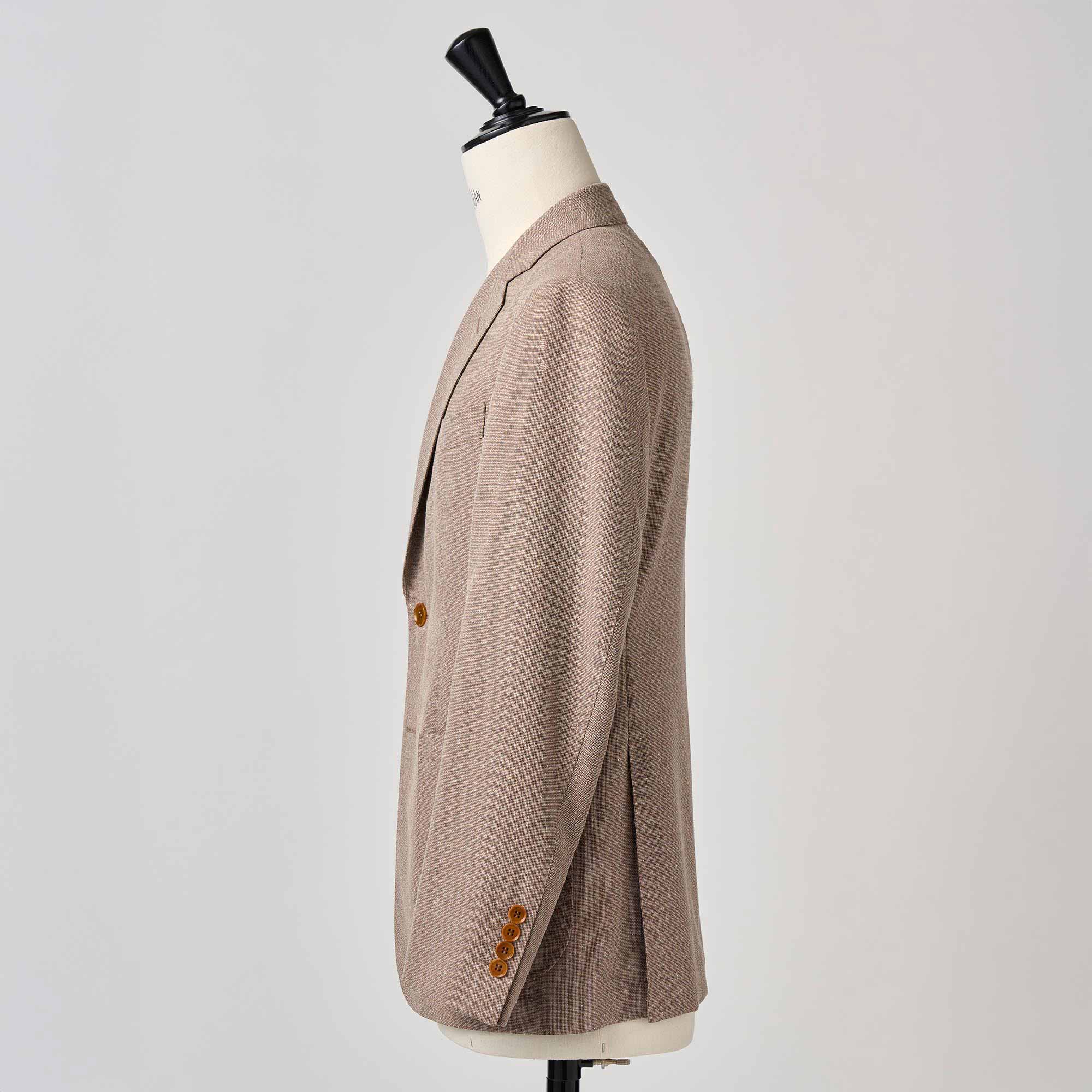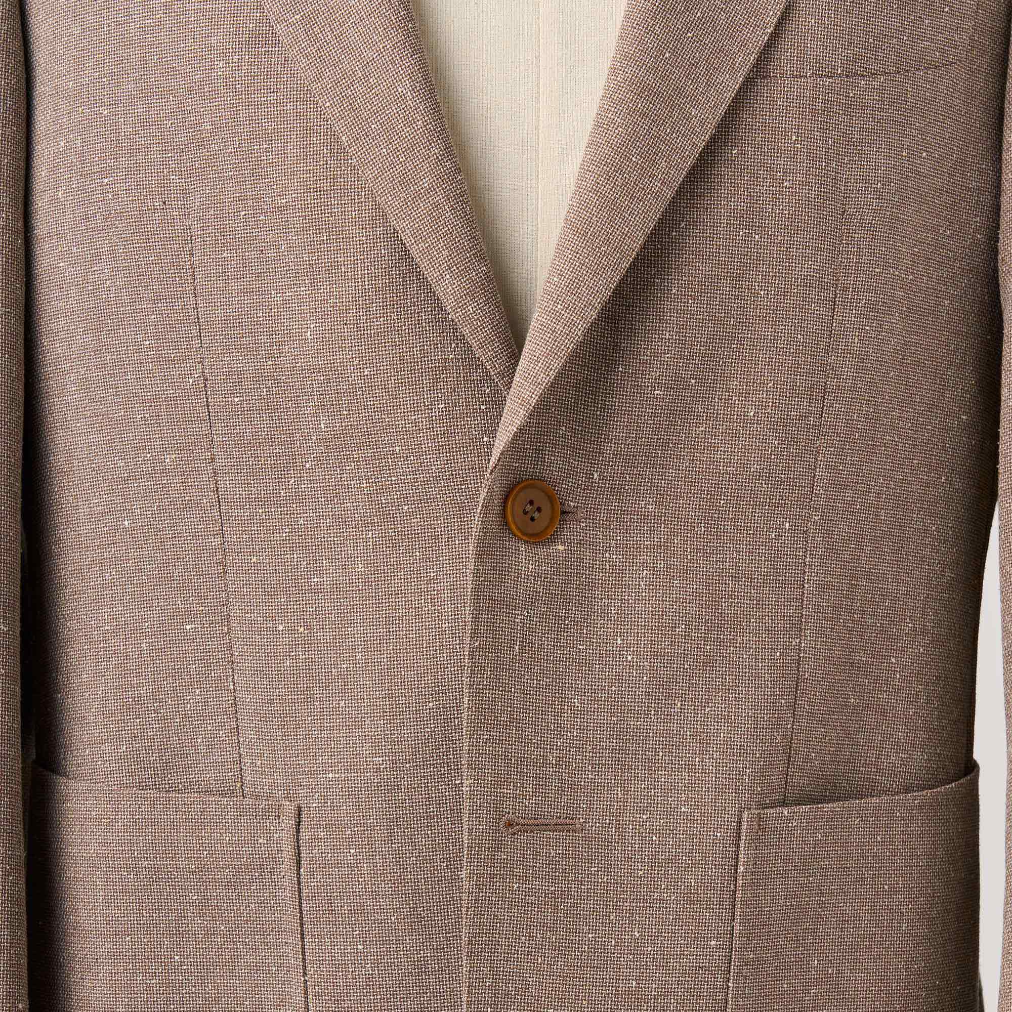 ベージュカラーのメッシュウールを使用し、ハーフ毛芯の半裏ジャケットを仕立てました。