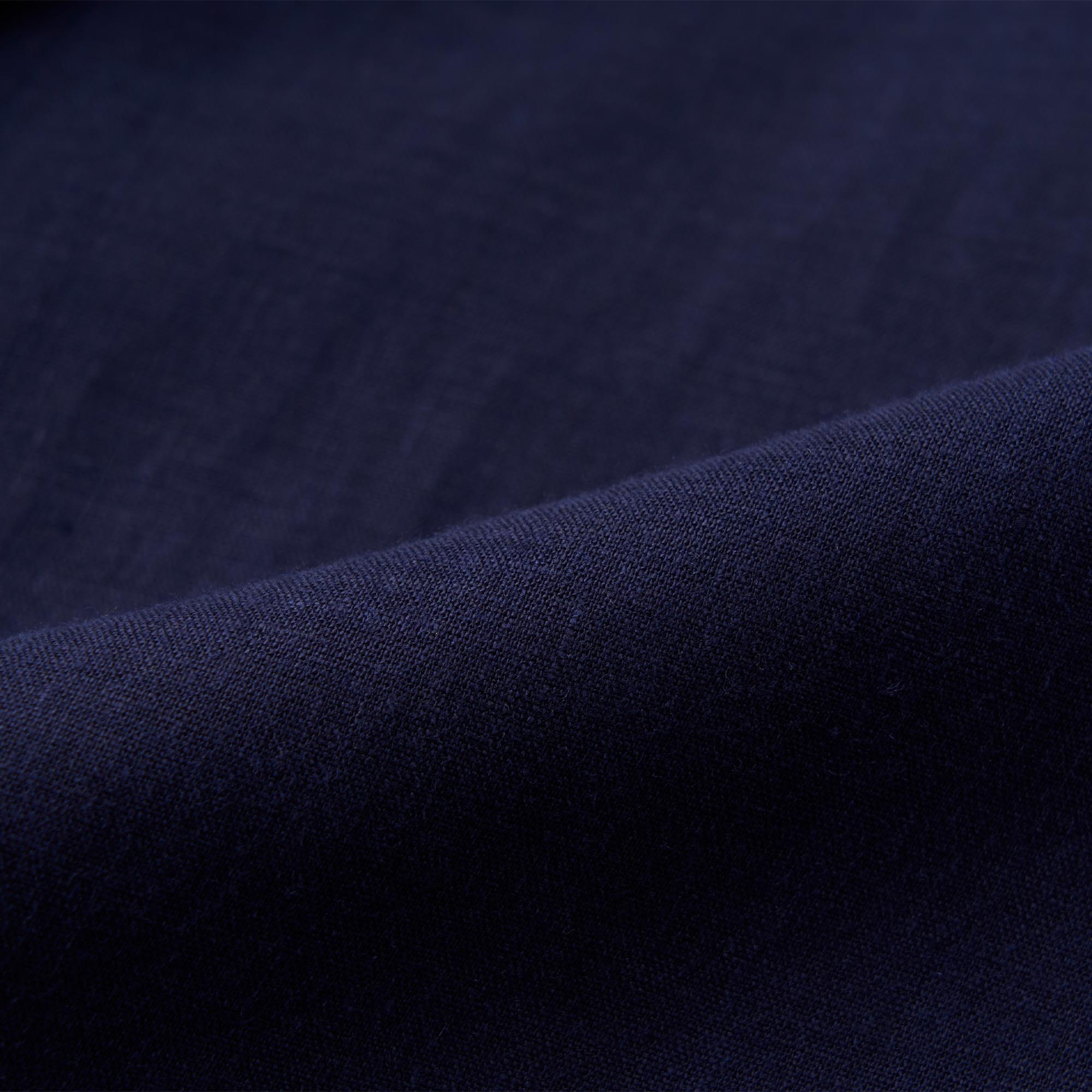 涼感があるのはもちろん、使い込むほどに肌に馴染み、シルクのような控え目な光沢が出てきます。汗をかいても肌に張り付かず、常にドライな質感を保ちます。リネンの最大の魅力はシワです。肘や背中に深く刻まれるシワが、コットンのそれよりもシャープで、リッチな陰影を生み出します。リネン特有の風合いを楽しむ、非常にエレガントで趣味性の高い一着です。