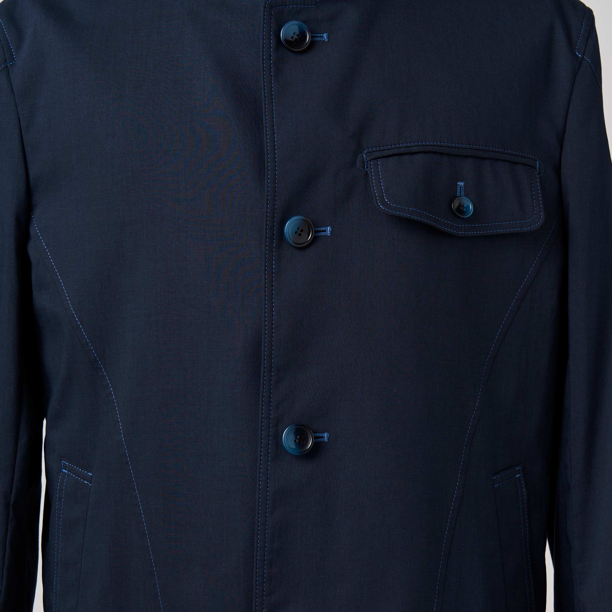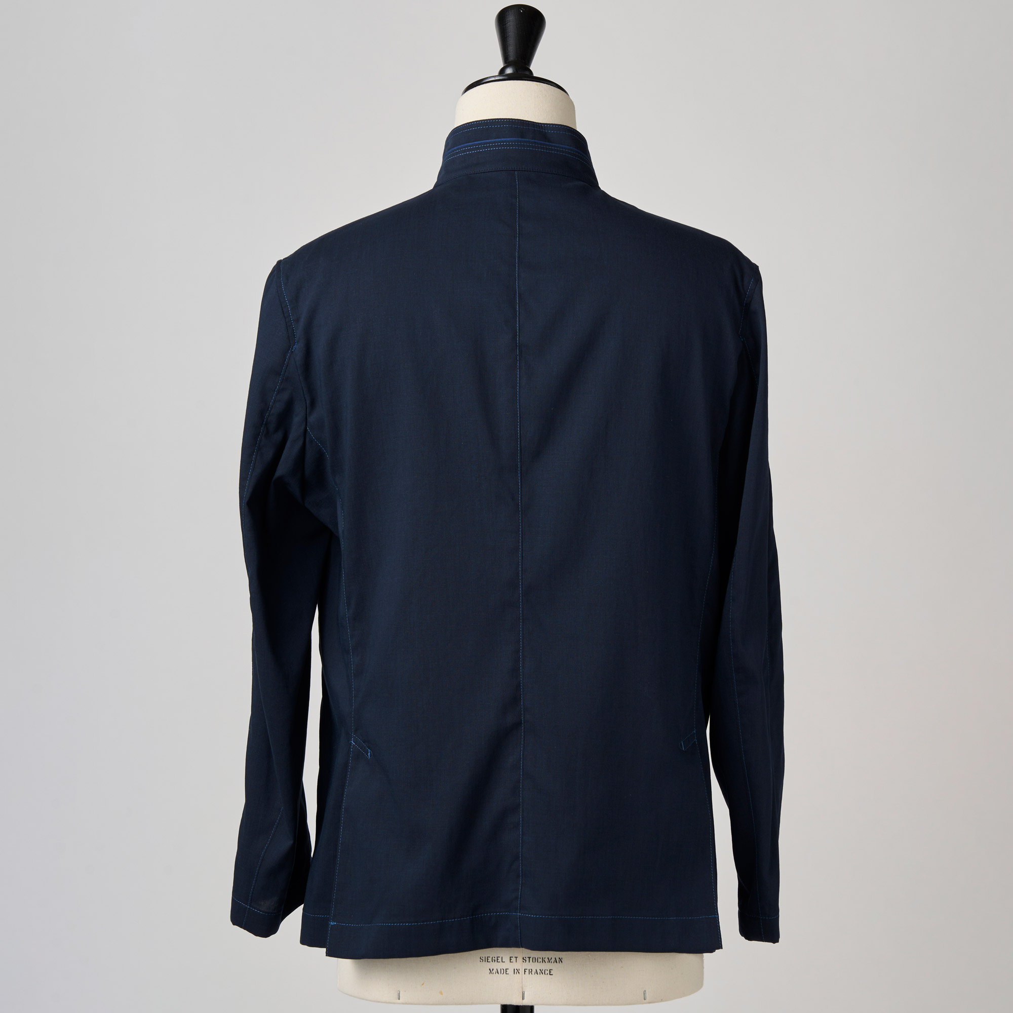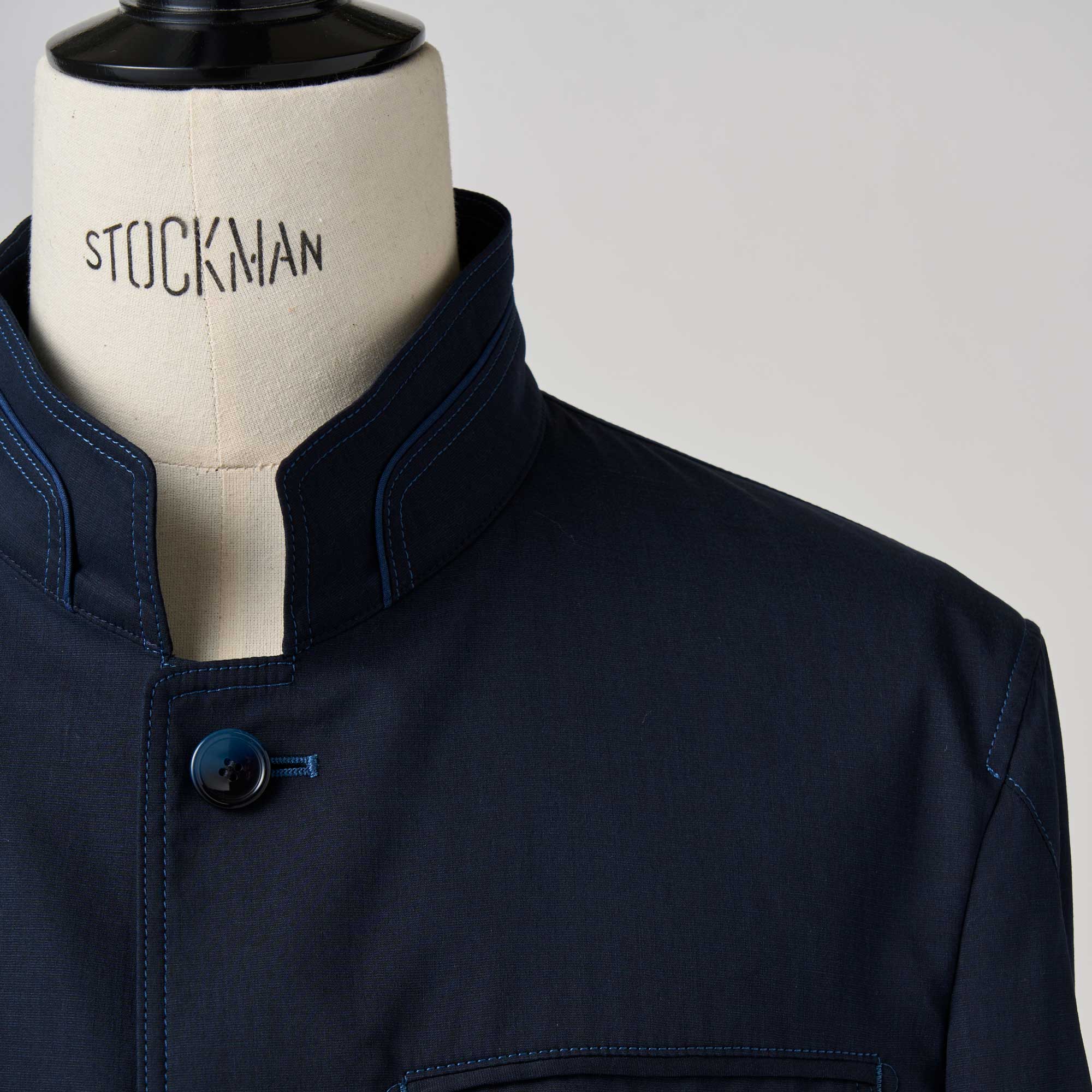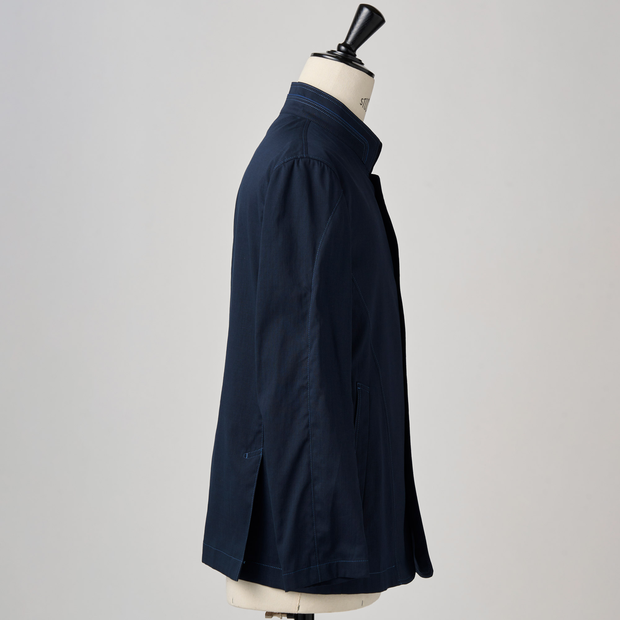 ネイビーポリエステルリネン スタンドカラージャケット