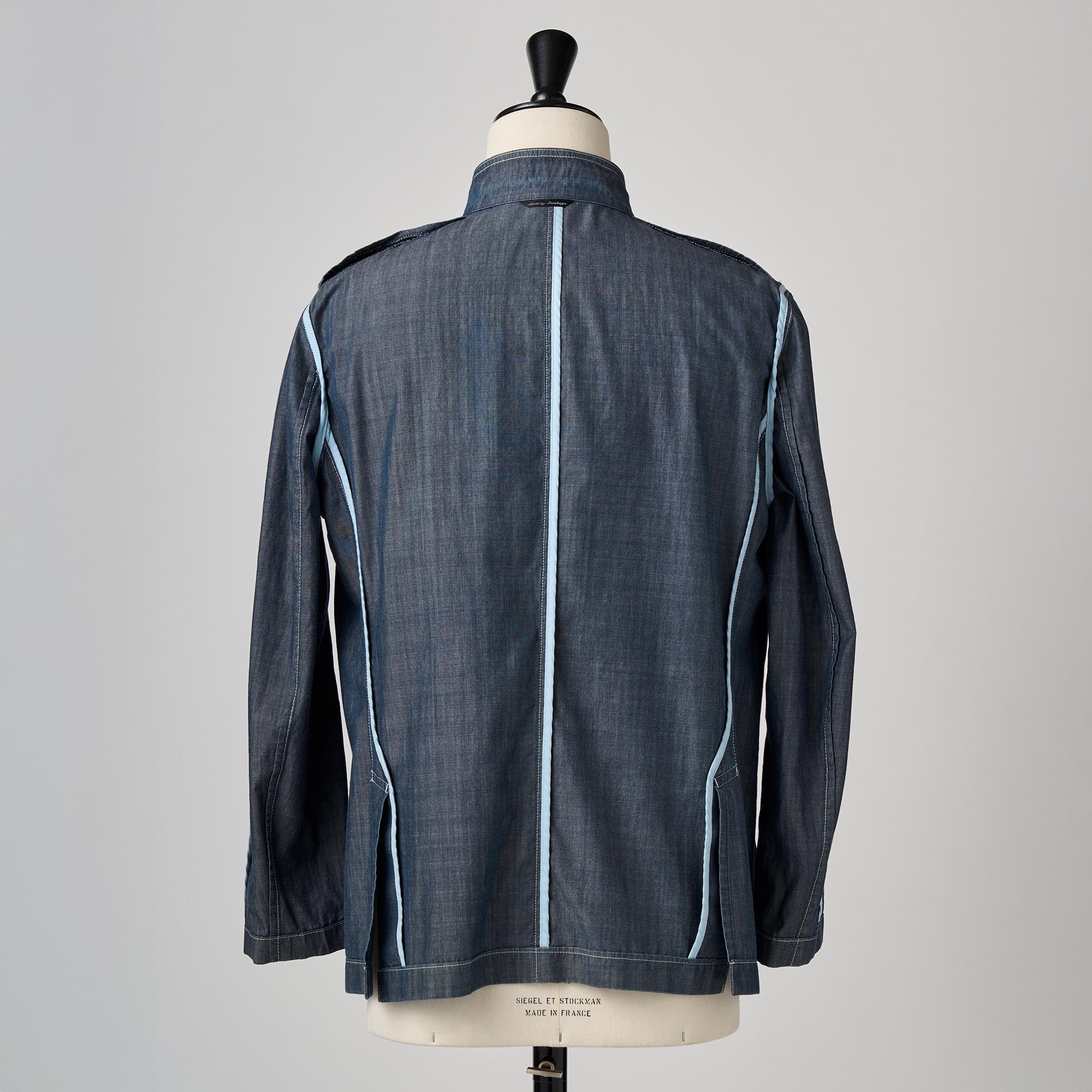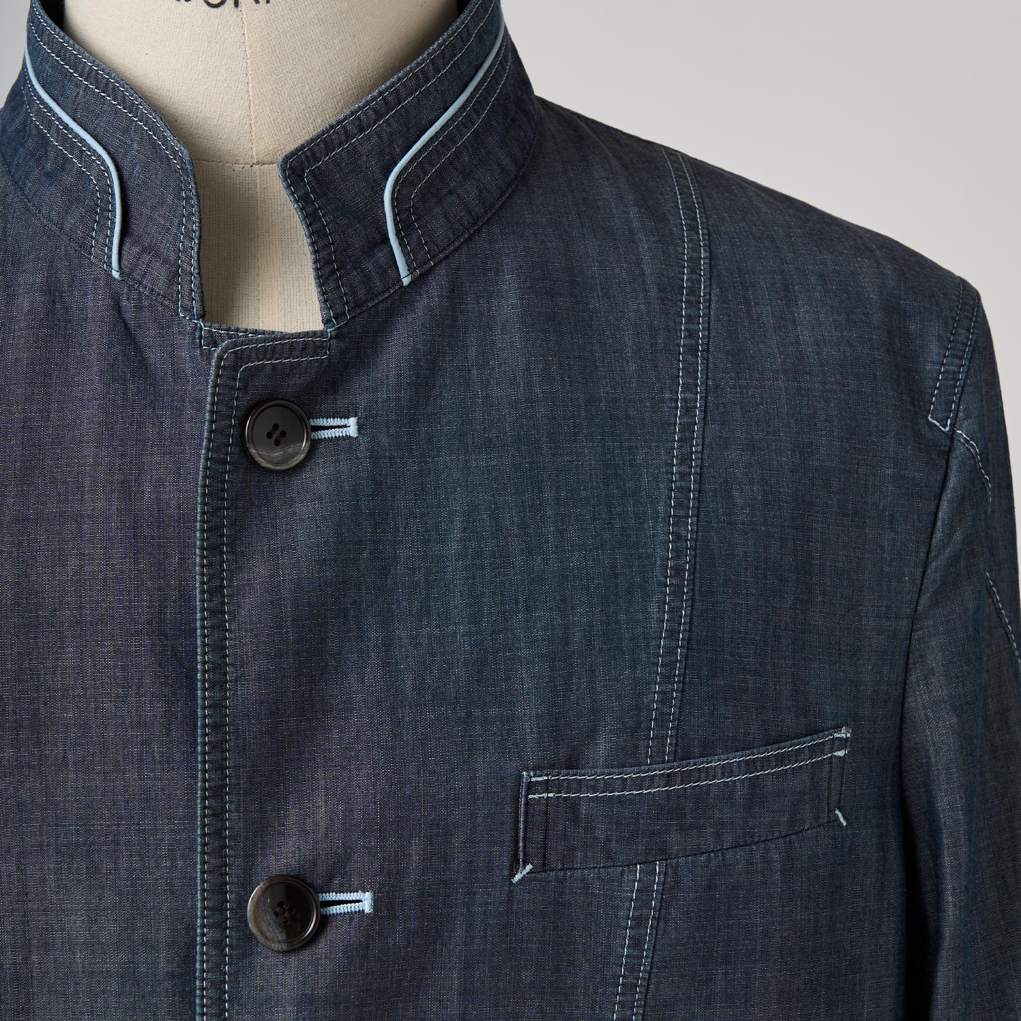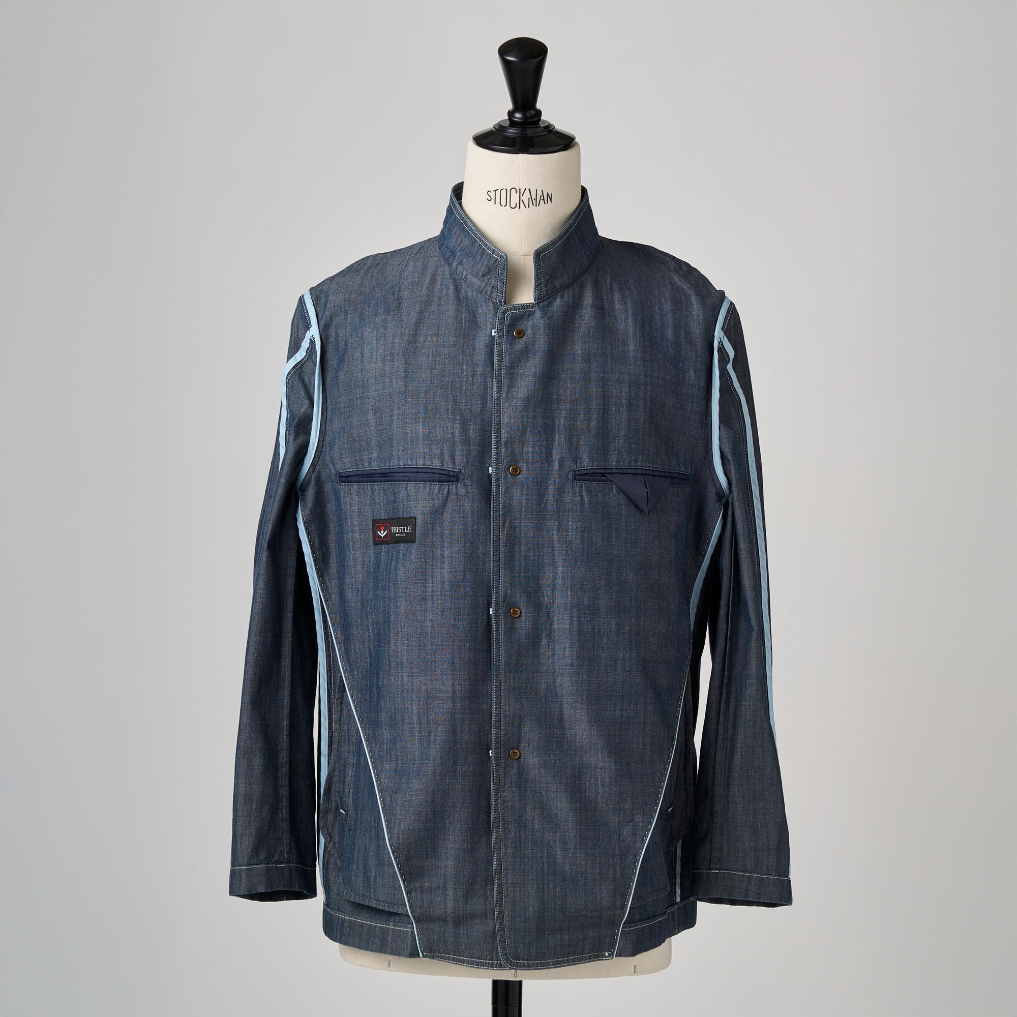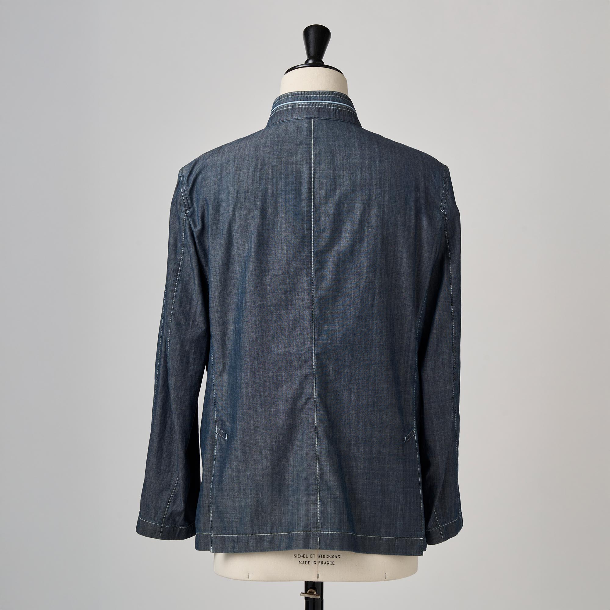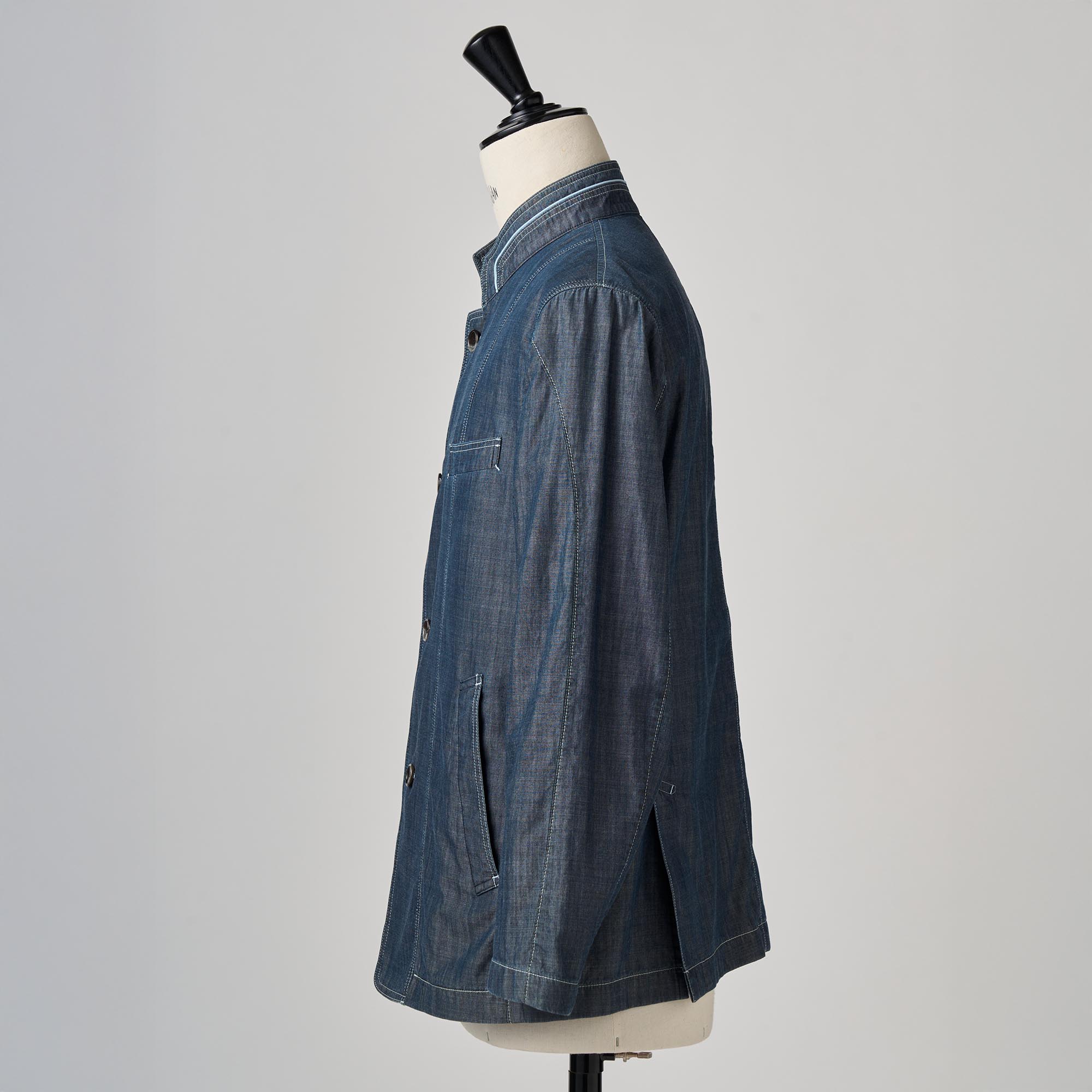 3.7オンスダンガリーデニム ガーメントウォッシュ スタンドカラージャケット