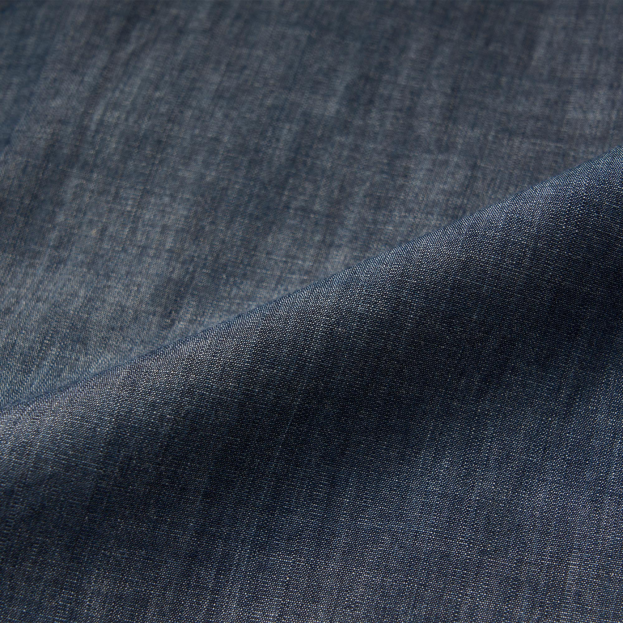3.7オンスという驚異的な羽根のような軽さは真夏の冷房対策や、日差し除けとして羽織っても全く苦になりません。ガーメントウォッシュをすることで細かなシワ感が生まれます。これがスタンドカラーの直線的なデザインに、柔らかな表情を加えます。スタンドカラーがもたらす、知的なラフさが都会的であり、釦を全て留めてシャツとして着る事も、前を開けて羽織りとして着ることも出来る、2WAYの楽しみがあります。