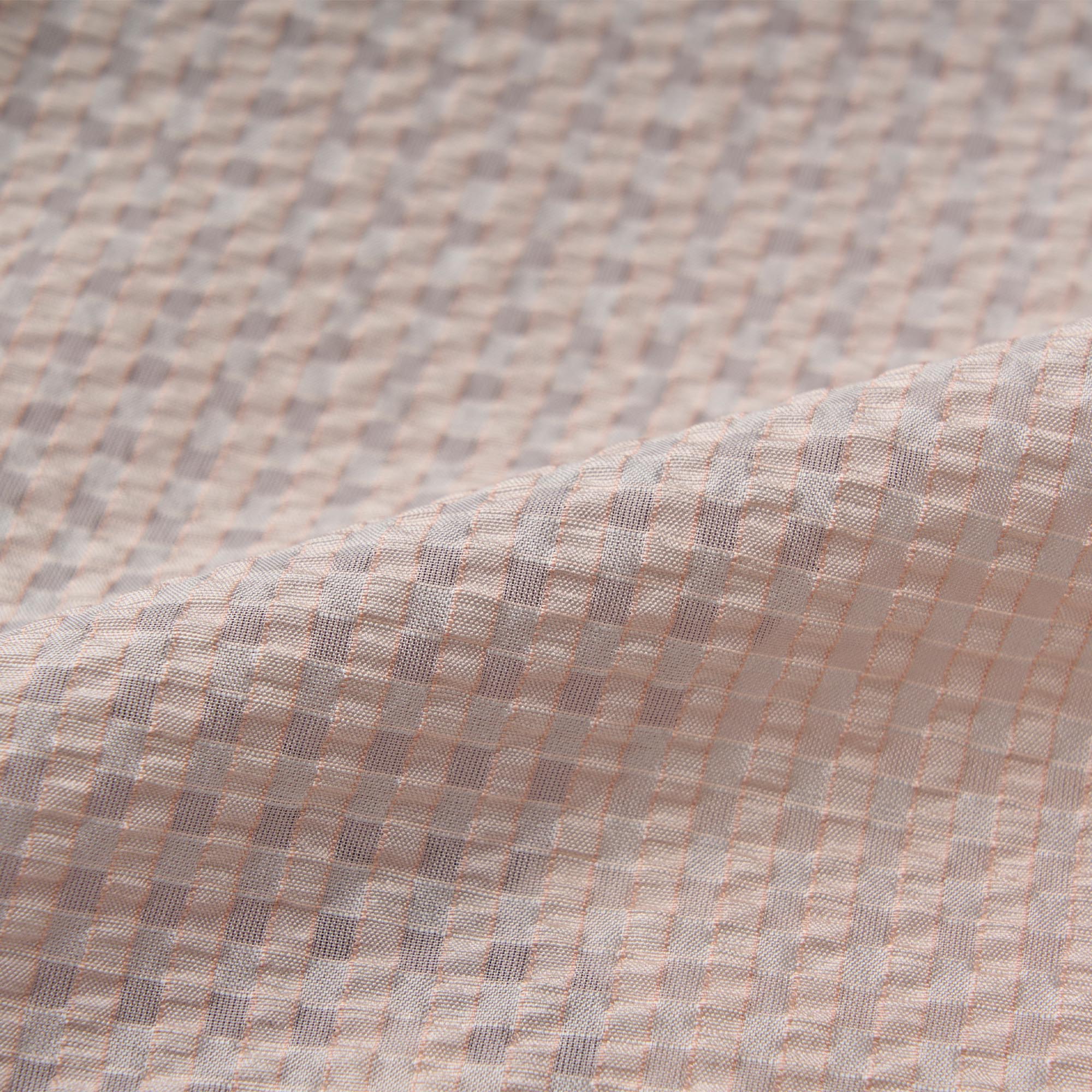 オレンジがかった温かみのあるピンク(サーモンピンク)とシルクサッカーの高級感が組み合わさることで真夏の太陽の下で誰よりもエレガントに映える仕上がりになっています。肌色に近い血色感のある色なので、顔色を健康的に若々しく見せてくれます。