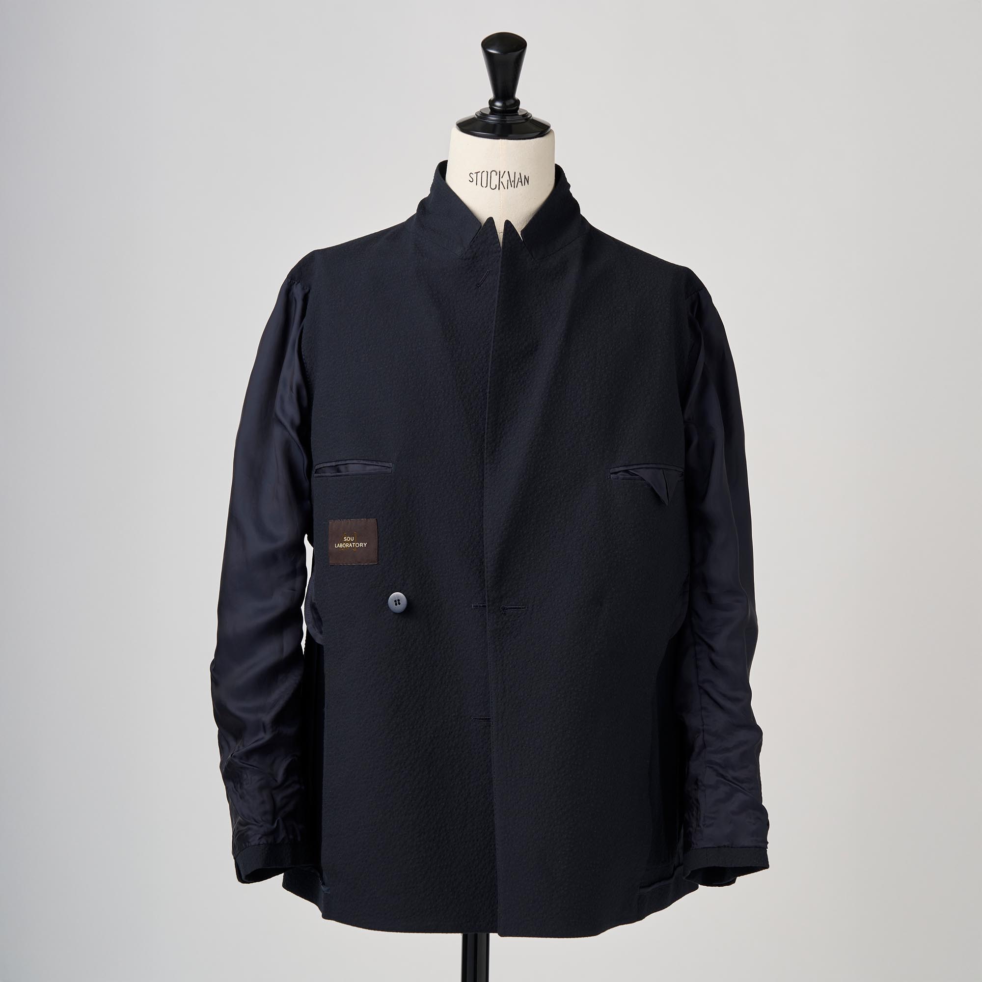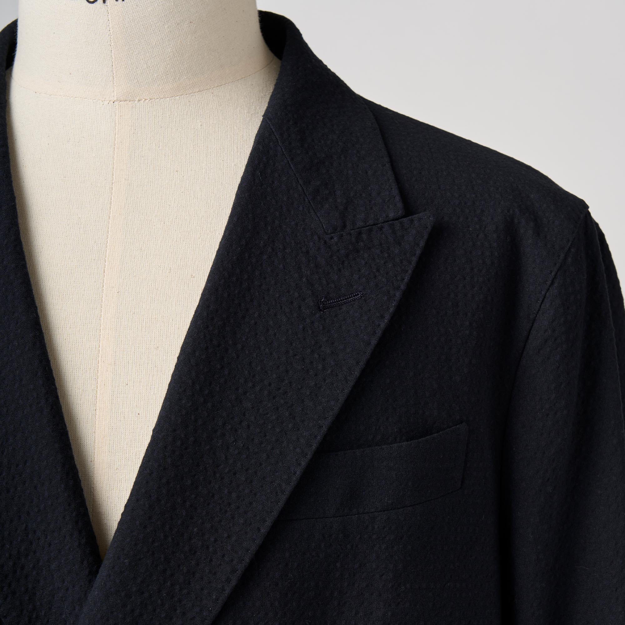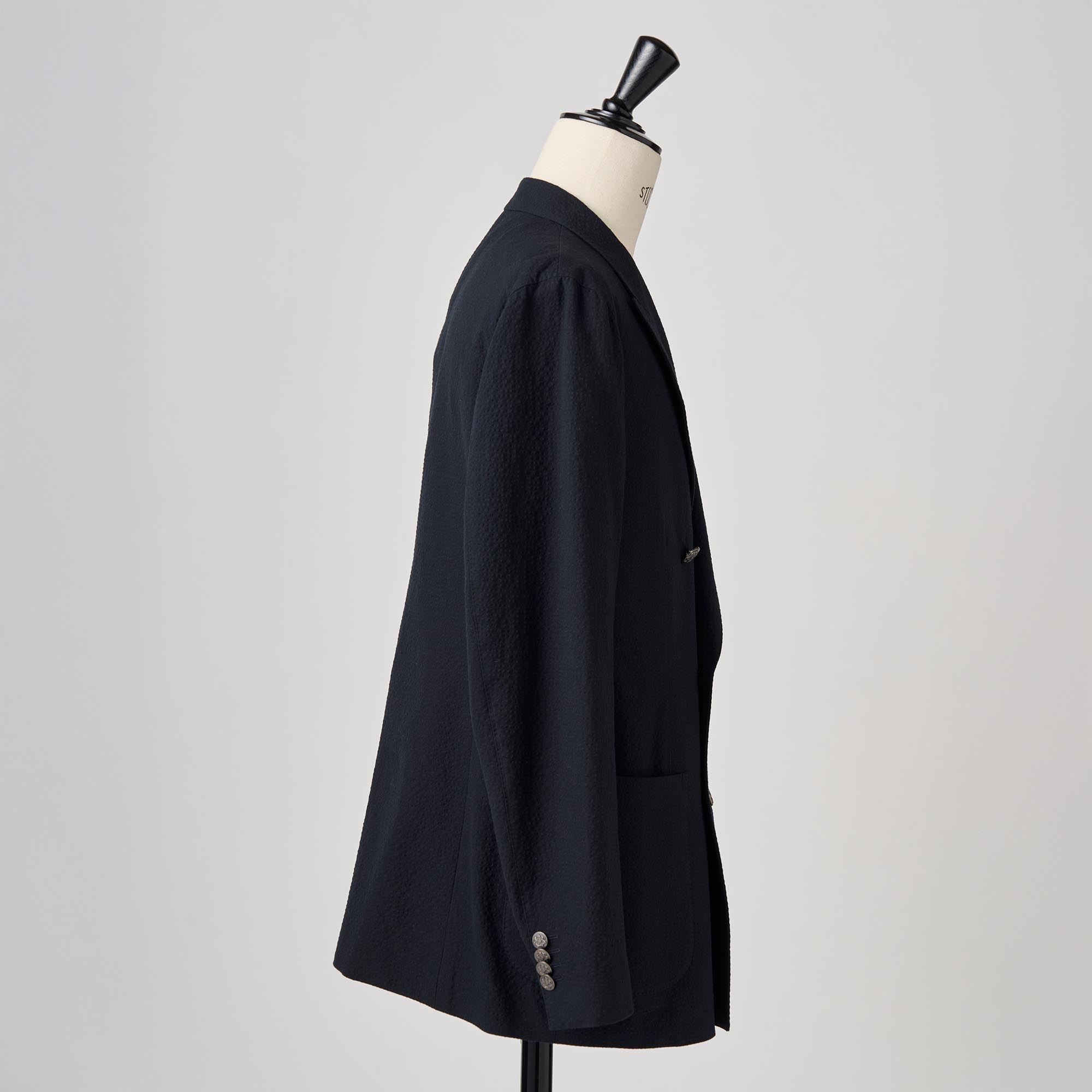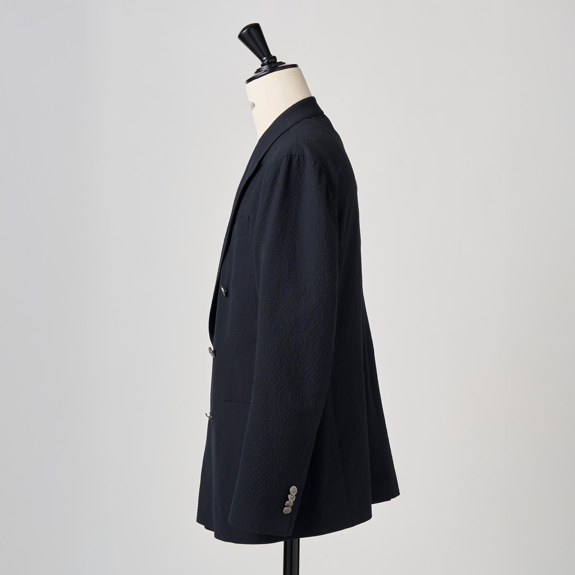 ダークネイビーコットンストレッチサッカー ダブルブレストジャケット