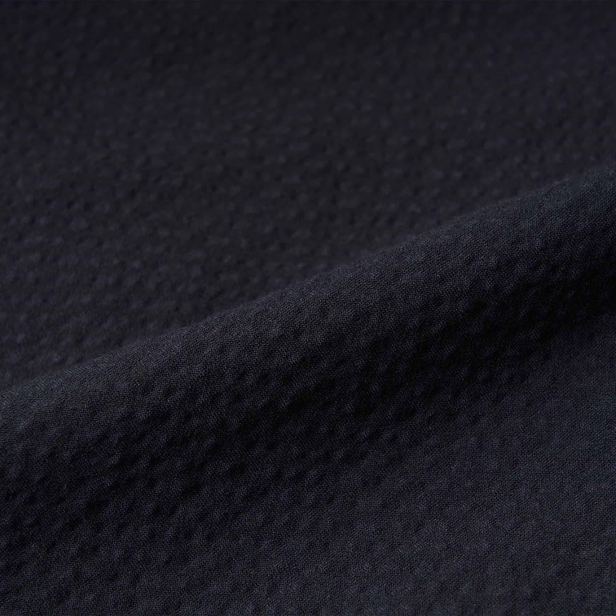 ダークネイビーのコットンストレッチサッカーを使用し、アンコン仕立てのダブルブレストジャケットを提案します。釦は上品で落ち着きのあるブラックメッキを使用しています。これにより上品さが出て、ビジネスシーンでも対応が可能です。コットンの柔らかい風合いに更にストレッチ性を効かせることで、リラックスした着心地になります。同素材のパンツと合わせたセットアップスタイルなら大人のモダンなエレガントなスタイルが完成します。春夏シーズンの定番素材であるシアサッカーを、都会的で洗練された印象に仕上げた一着です。