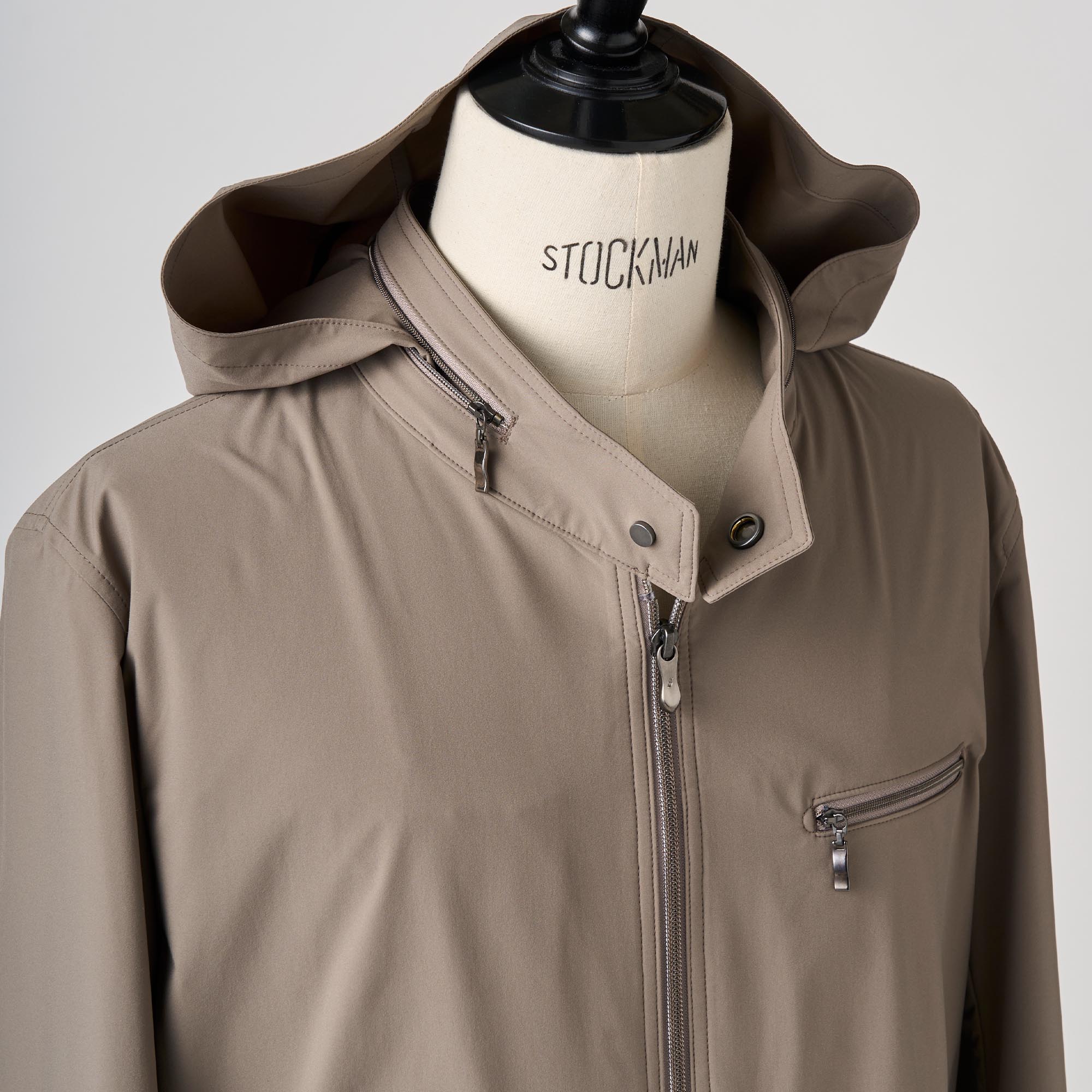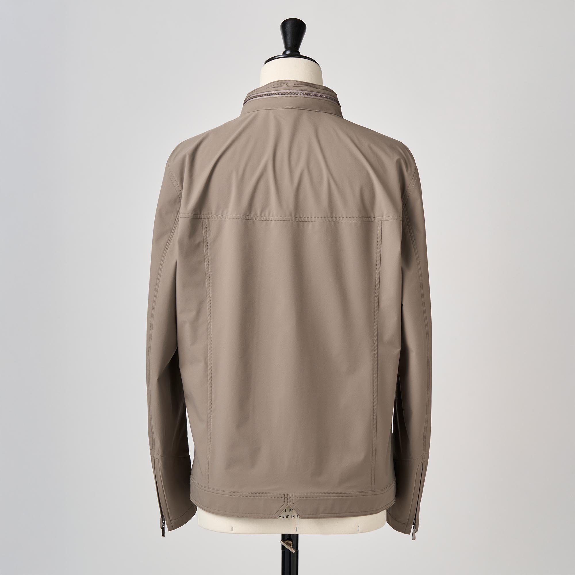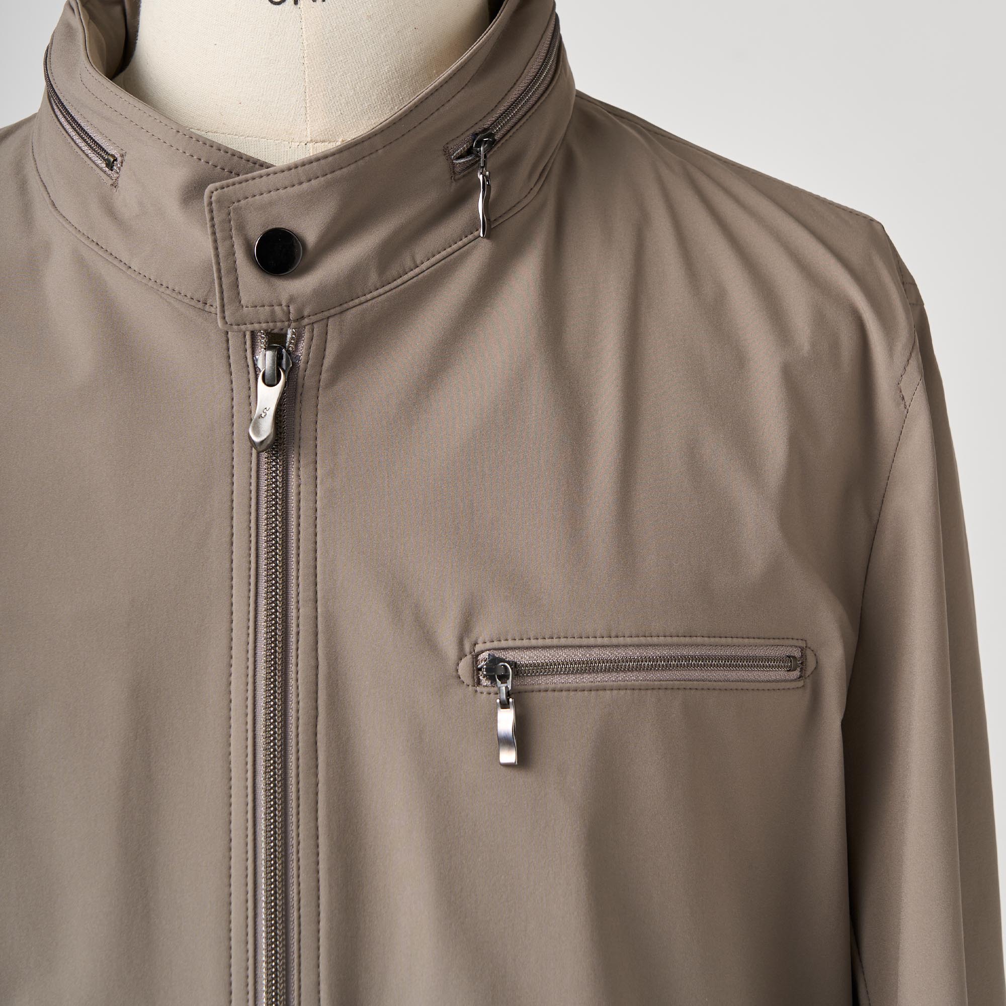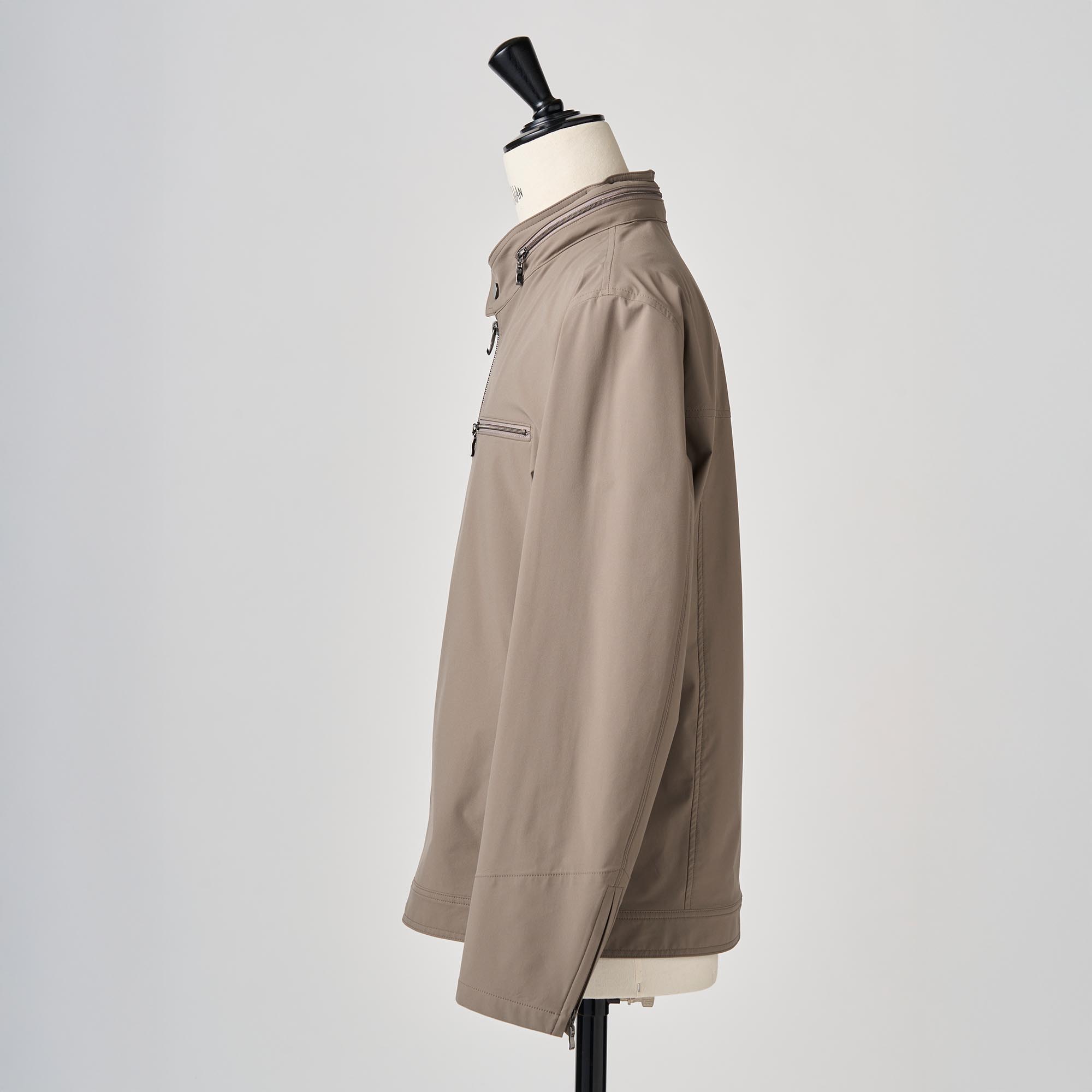 ベージュ撥水ストレッチポリエステル ショートブルゾン