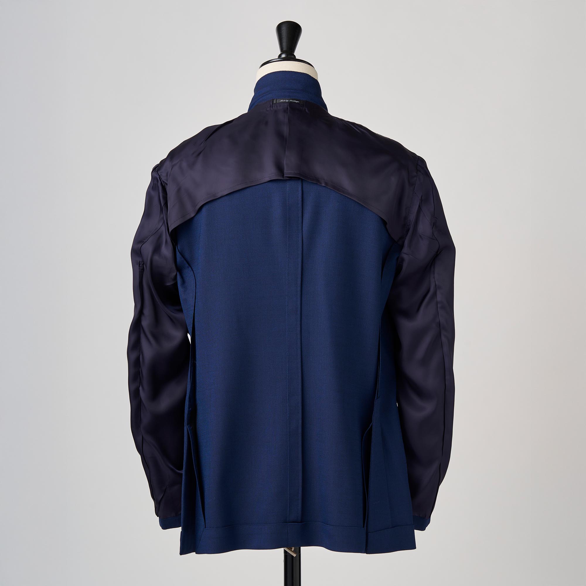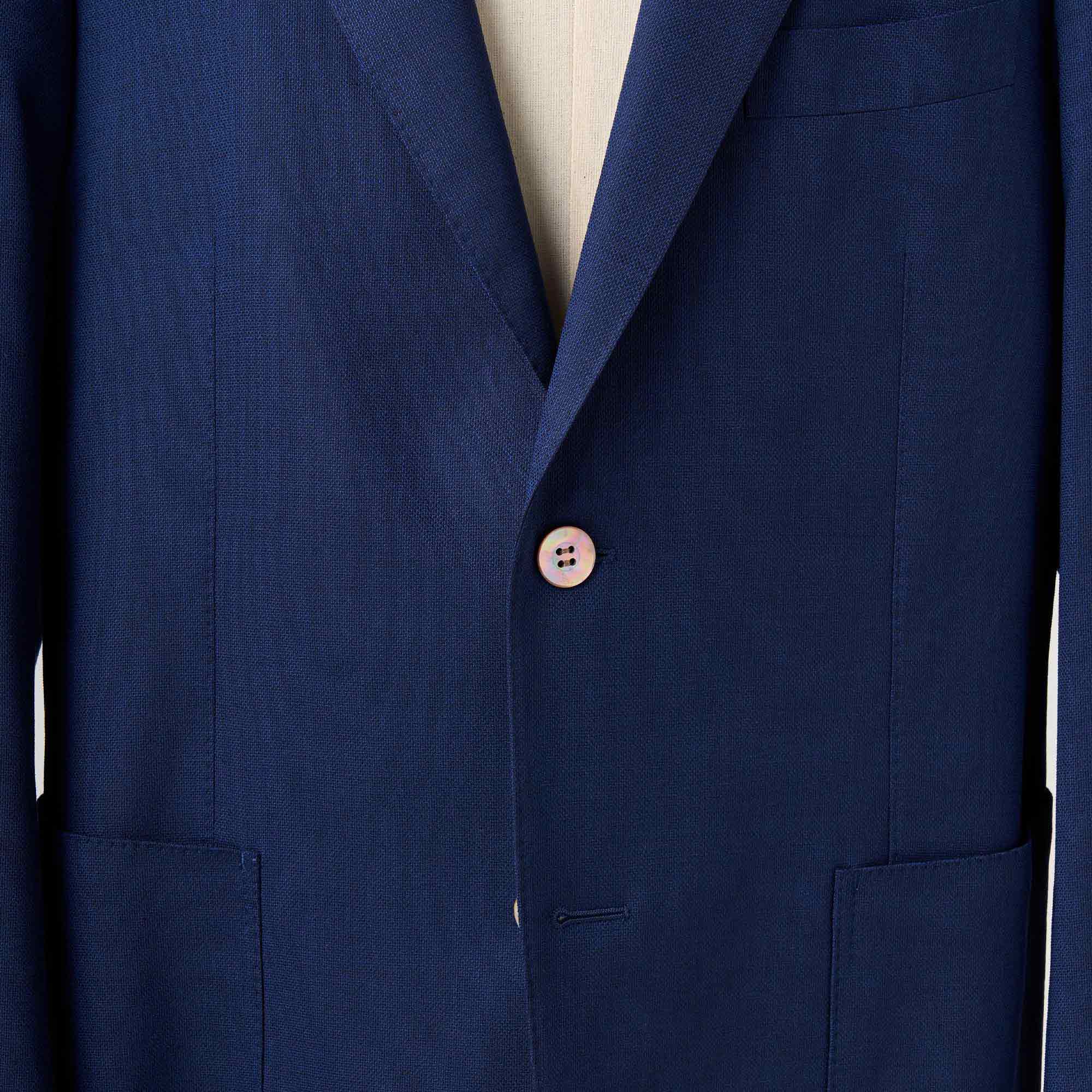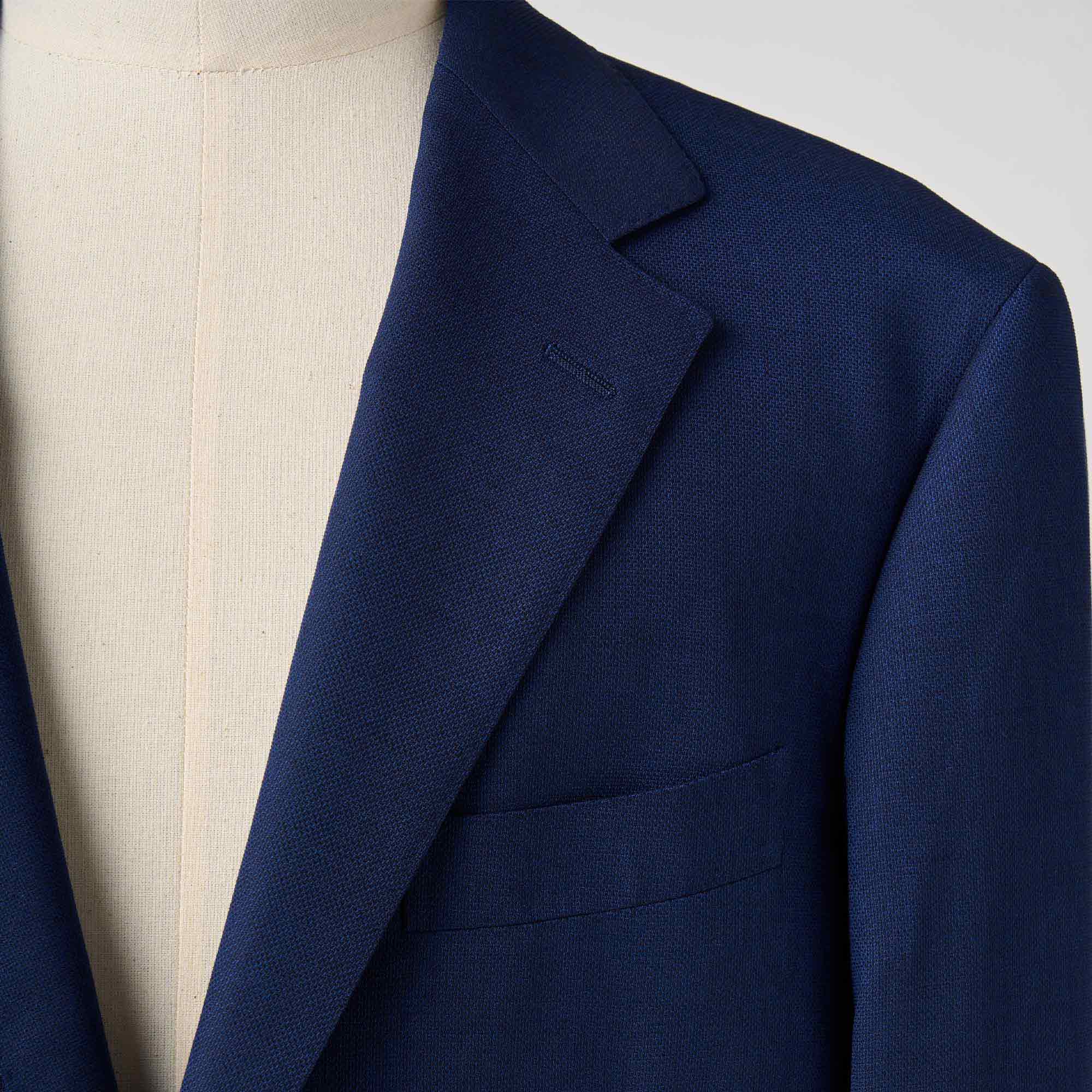 イタリアの老舗素材メーカーのメッシュウールの素材を使用し柔らかい毛芯を入れた仕立てのジャケットです。網目状に織り上げられたメッシュ組織により、風を通しやすく、衣服内の熱を素早く逃がします。盛夏の着用でも蒸れにくく、常に快適な衣服環境を保ちます。