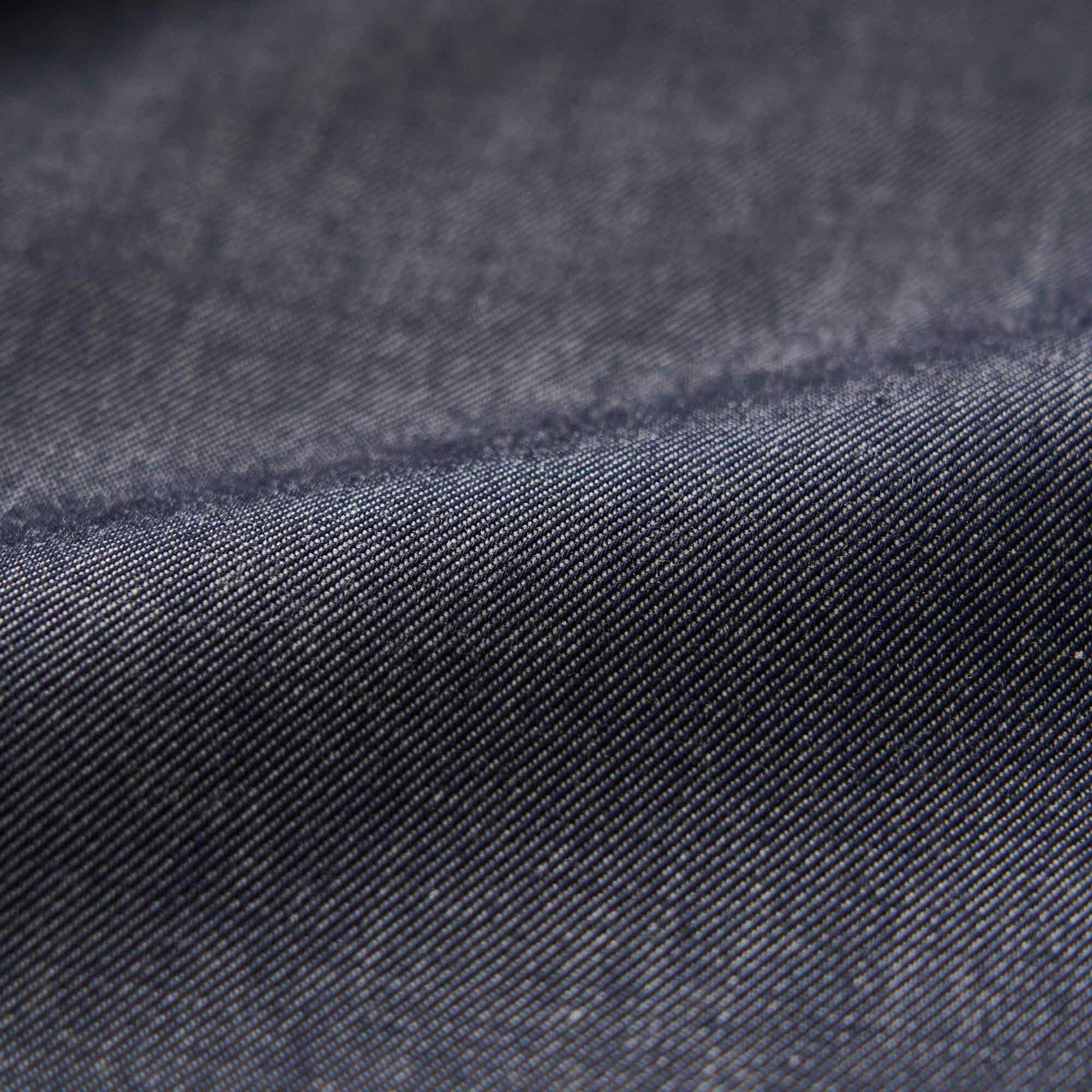 ウールデニムの特徴として色落ちが少なく、シワにもなりにくいので日々の手入れが容易になります。休日に着用をお勧めな上品でカジュアル感を出した1着です。