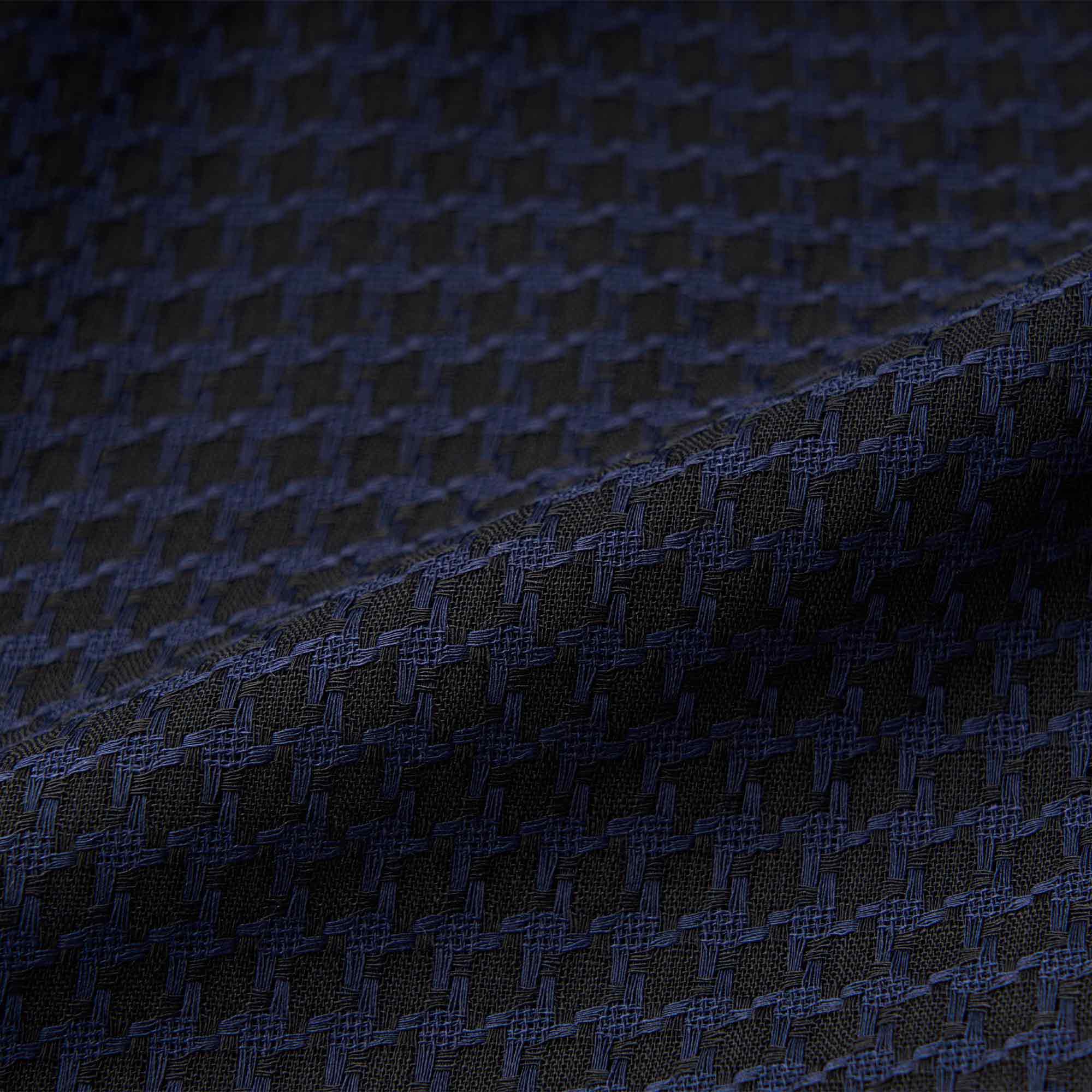 光にかざすと透けるほどの清涼感がありながら、着用時にはウール独特のドレープ性が美しいシルエットをキープします。ネイビーの深い色合いがメッシュの凹凸によって程よく和らぎ、マットで洗練された表情を演出。シワになりにくく、出張や移動の多いビジネスパーソンにとっても、常に品格を保てる頼もしい一着です。