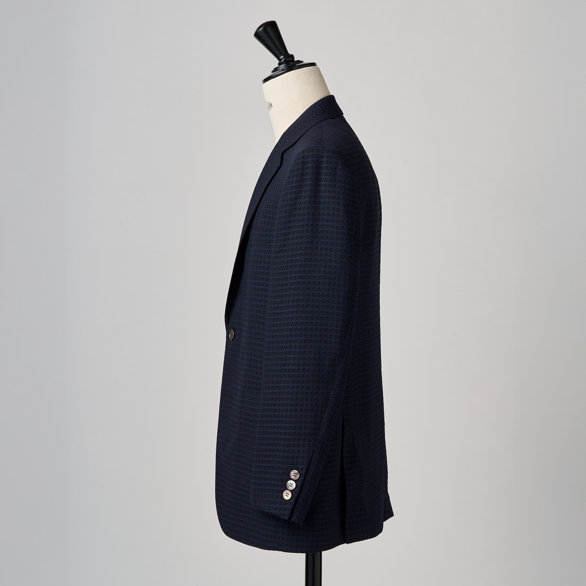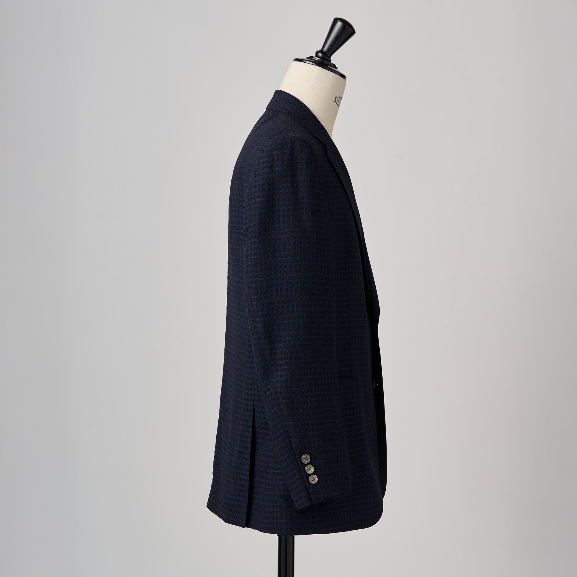 夏のビジネススタイルを劇的に変える、メッシュ組織のネイビージャケットです。上質なウールを贅沢に使用し、高度な織り技術でメッシュ状に仕立てることで、抜群の通気性と軽量感を実現しました。