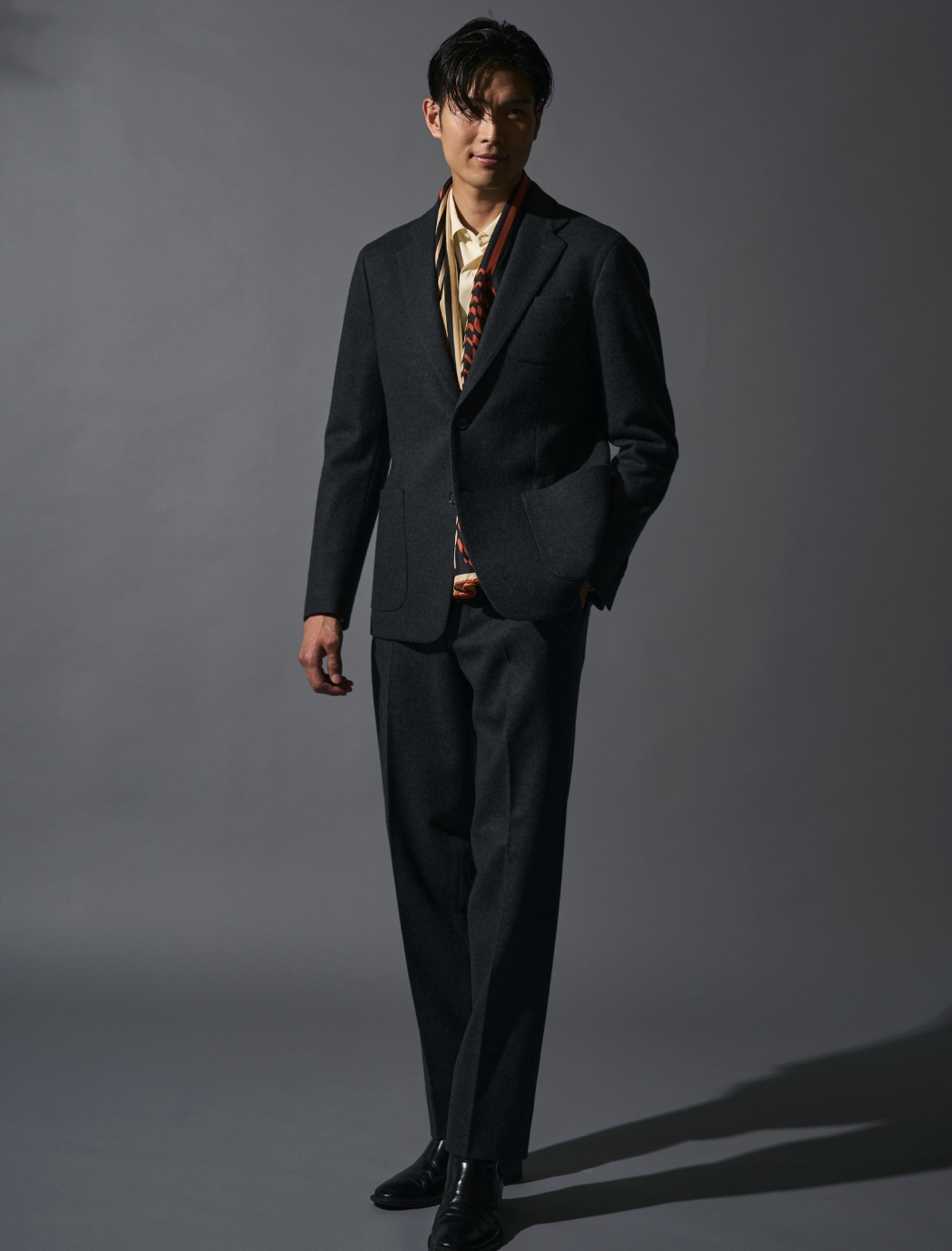 サルトリア的な美しいシルエットと、動きのゆとりという相反する条件を両立するその技術は、